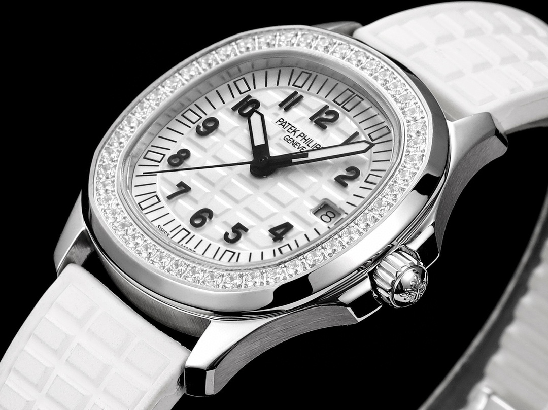 Patek Philippe Aquanaut 35.6mm White Dial Steel Diamond Bezel White Rubber Strap 5067A-024 Woman Ladies