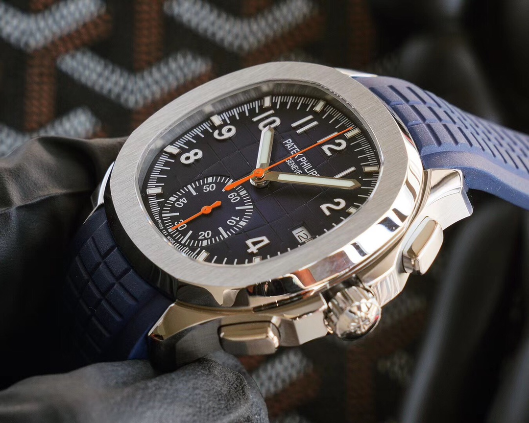 Patek Philippe Aquanaut 42.2mm Blue Dial Seetl Bezel Blue Rubber Strap 5968G-0001