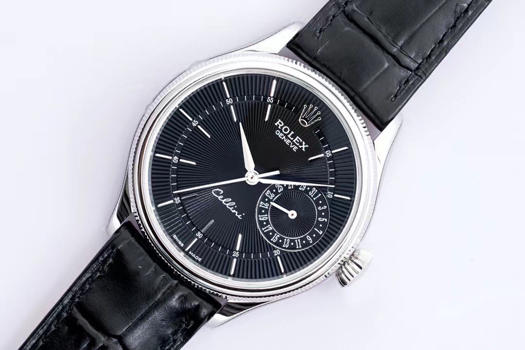 | Rolex Cellini Date 39mm Black Dial Platinum Bezel Black Leather 50519-0007 | |