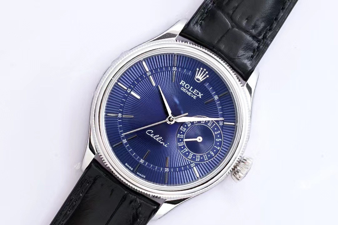 | Rolex Cellini Date 39mm Blue Dial Platinum Bezel Black Leather 50519-0011 | |