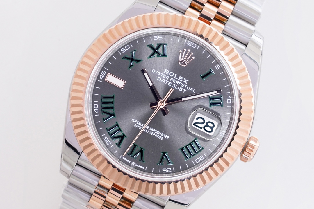 | Rolex Datejust 36mm 41mm Green Roman Numerals Grey Dial Rose Gold & Steel Bezel 126331-0016 | |
