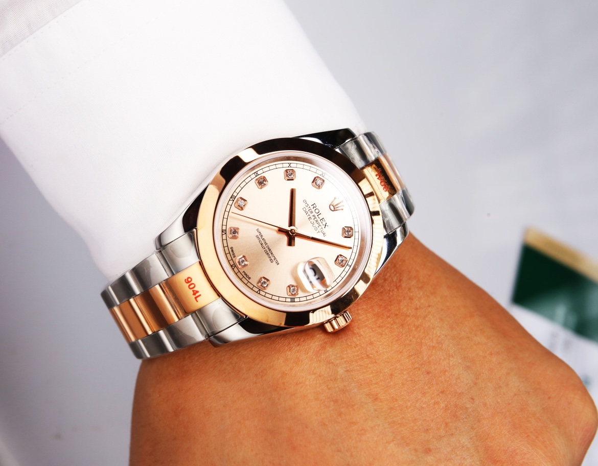 • Rolex Datejust Oyster 41mm Steel & Rose Gold Dial M126338 Diamond