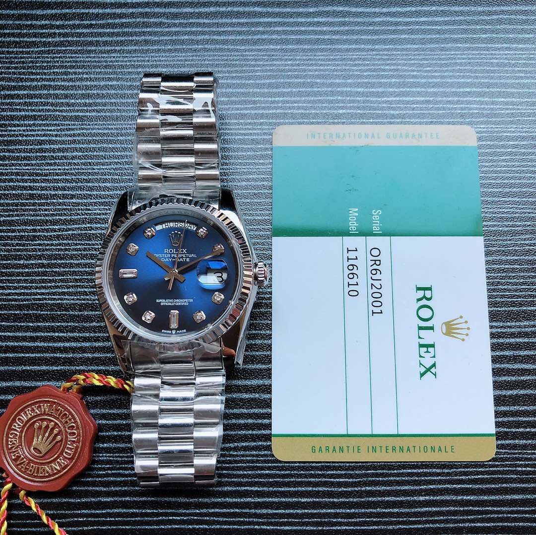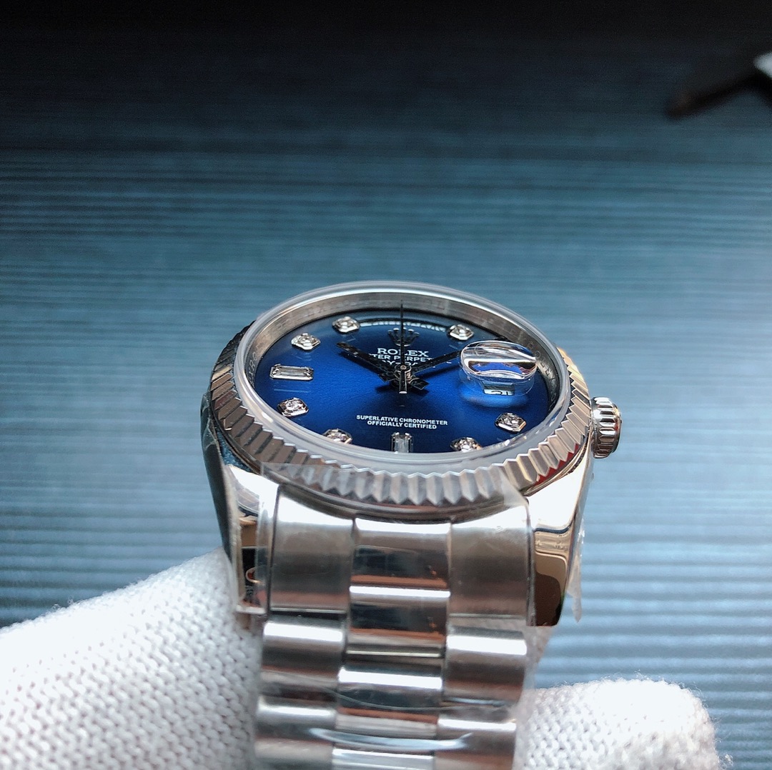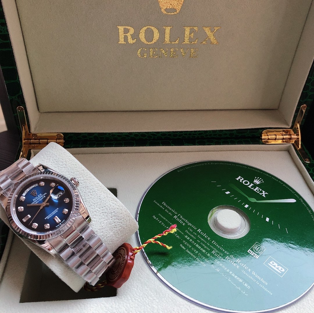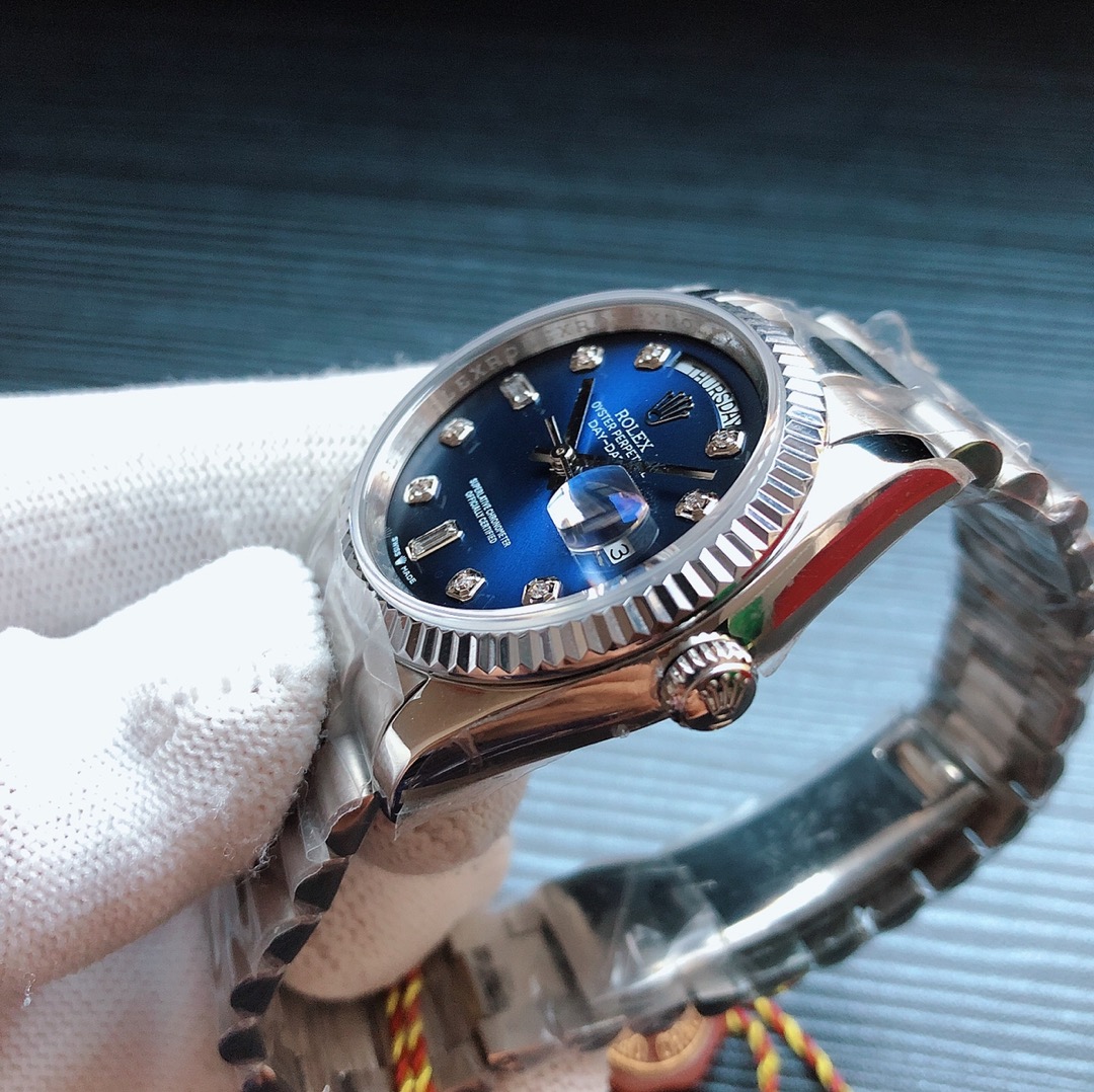 • Rolex Day-Date 36mm Dial Blue Platinum Diamond 128239-0023