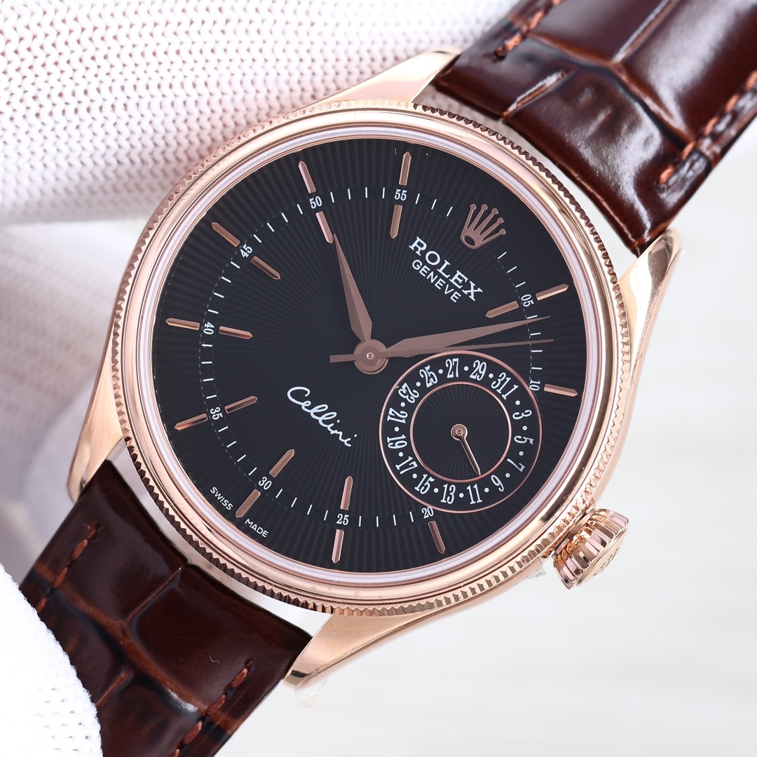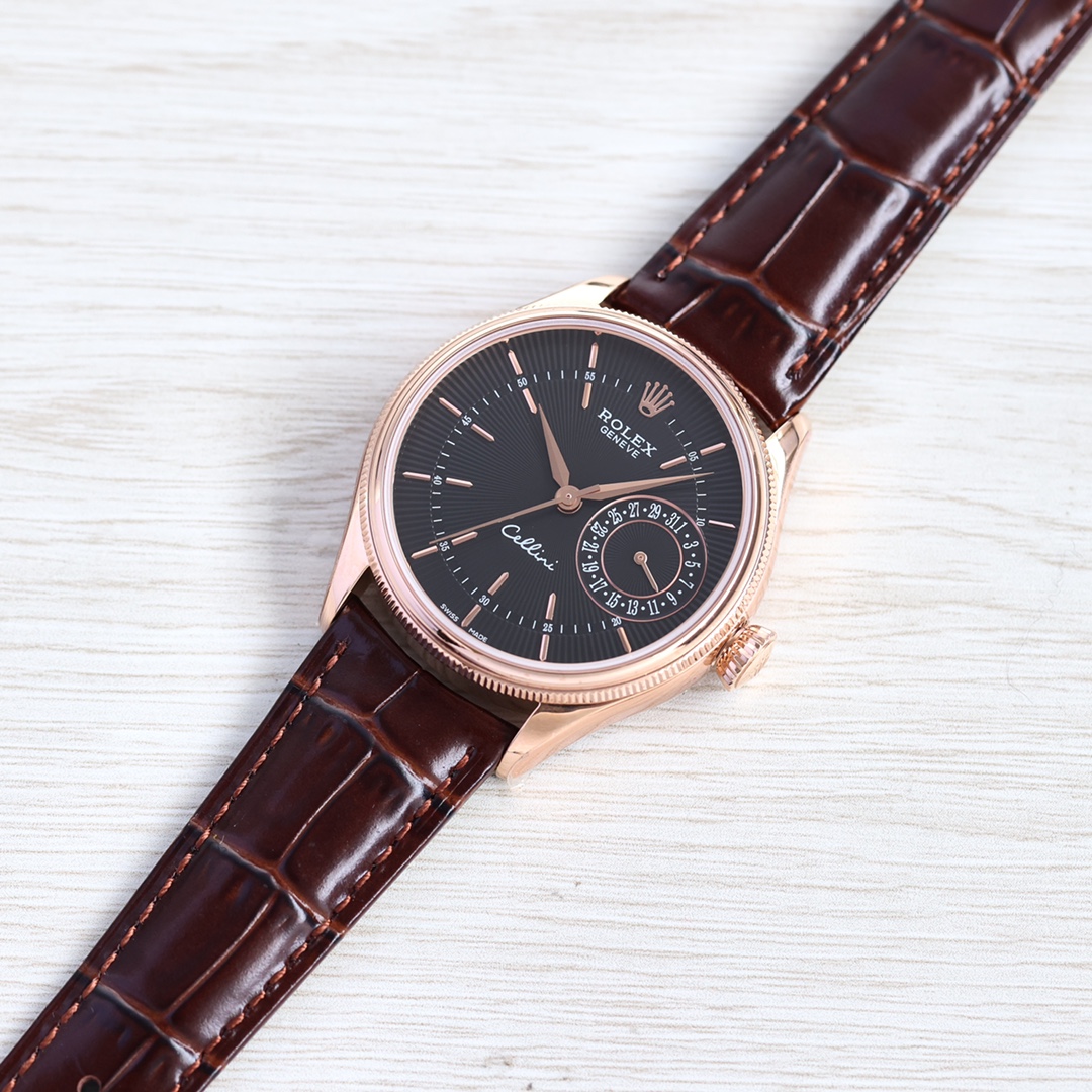 | Rolex Cellini Date 39mm Black Dial Rose Gold Bezel Brown Leather 50515-0010 | |