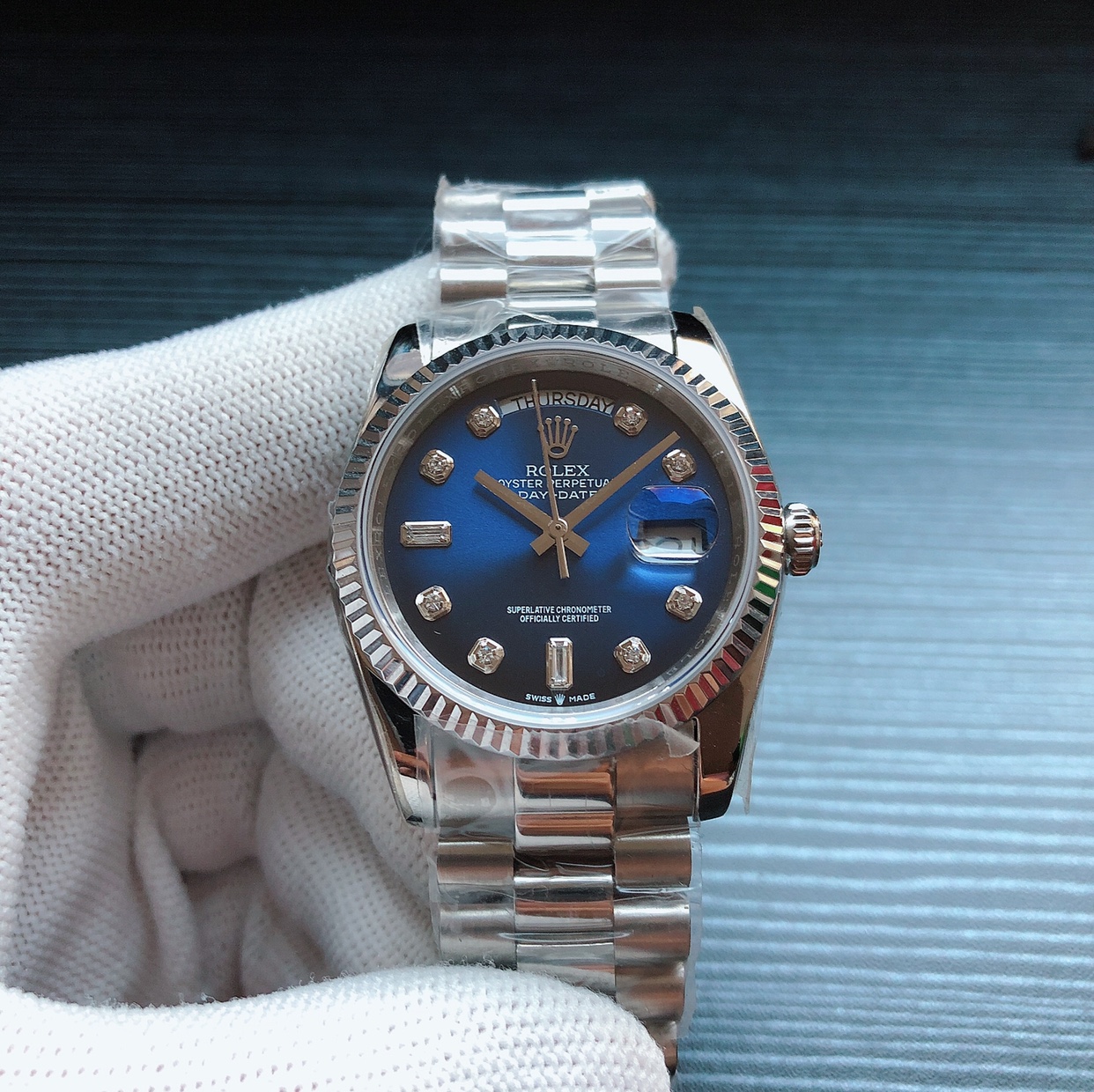 Rolex Day-Date 36mm Dial Blue Platinum Diamond 128239-0023