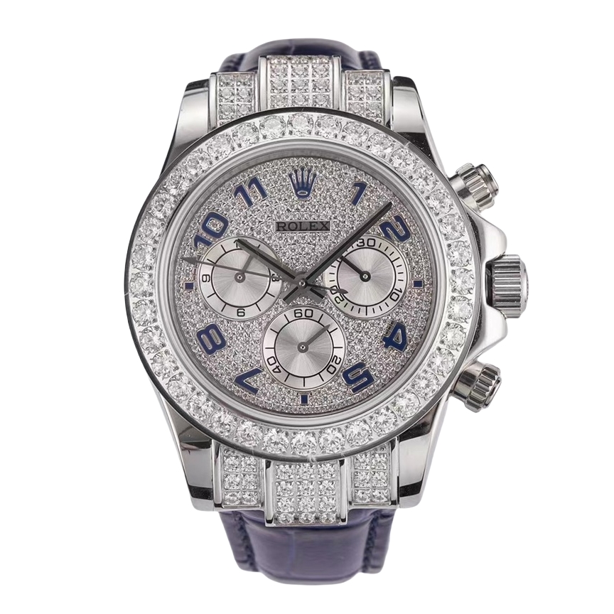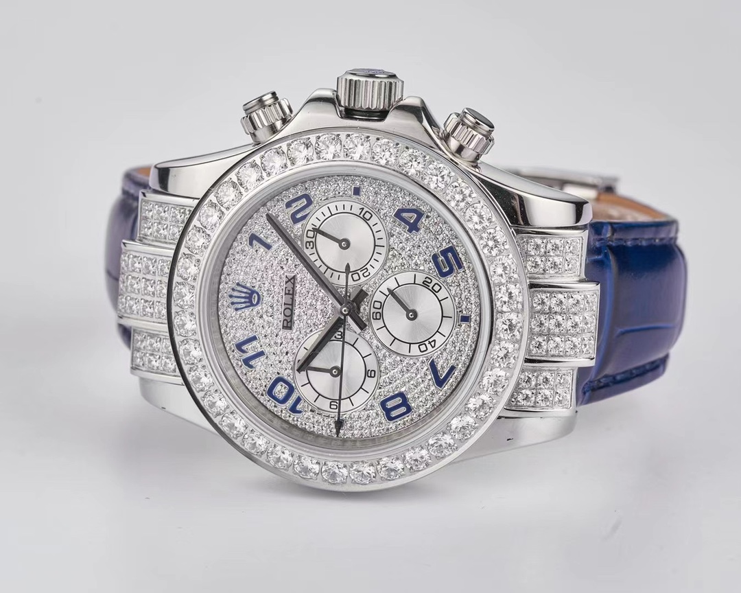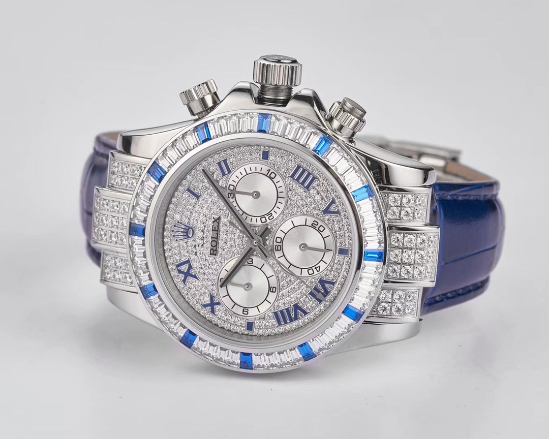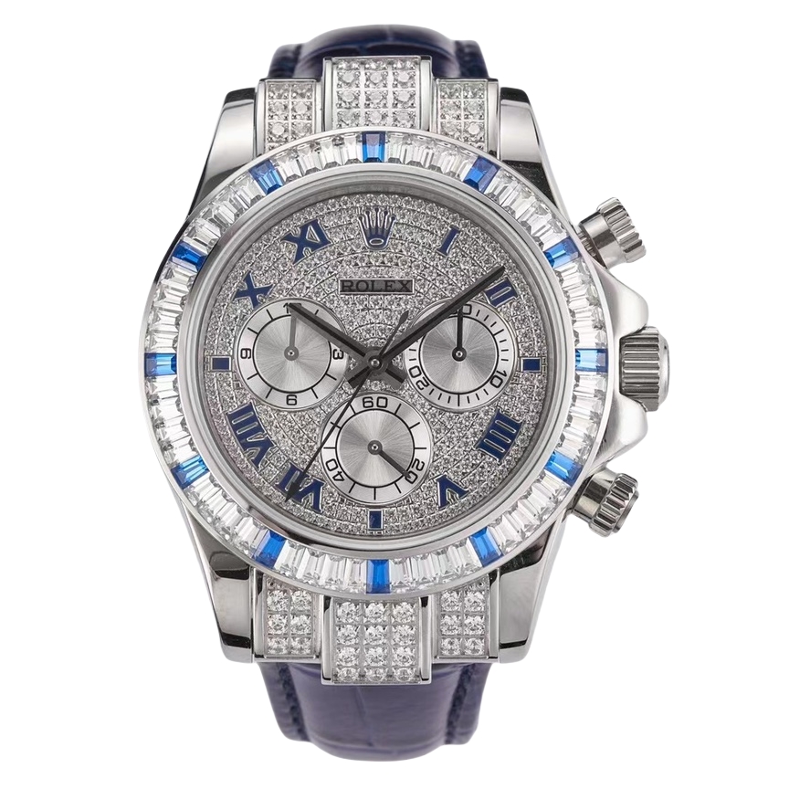 Rolex Daytona Cosmograph 40mm Dial Full Diamond Gen Platinum Blue Leather Roman Number 116599-12SA