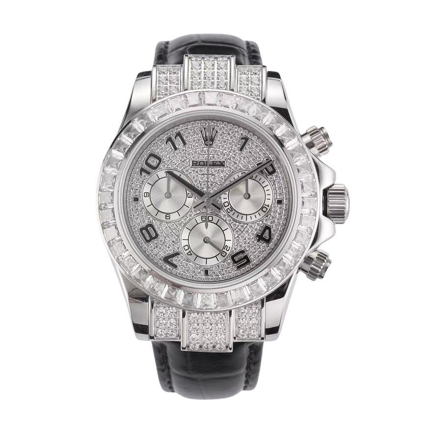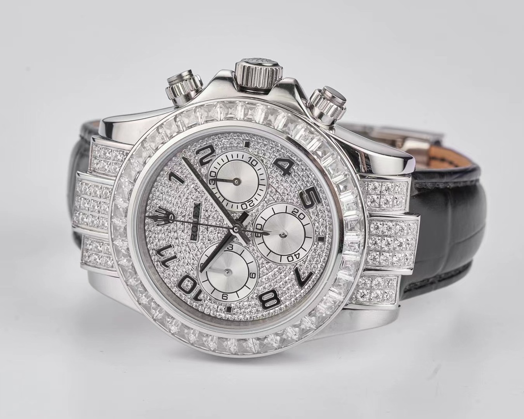 Rolex Daytona Cosmograph 40mm Dial Full Diamond Gen Platinum Black Leather 116599TBR