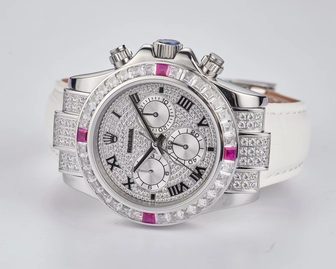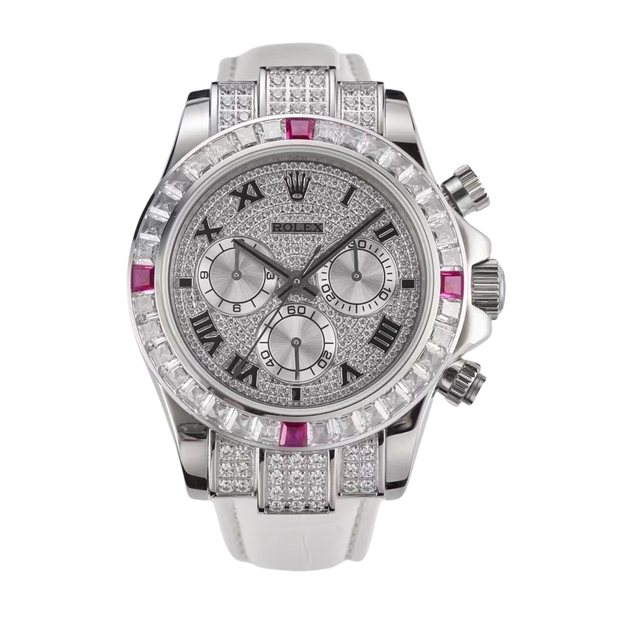Rolex Daytona Cosmograph 40mm Dial Full Diamond Gen Platinum White Leather 116599-4RU