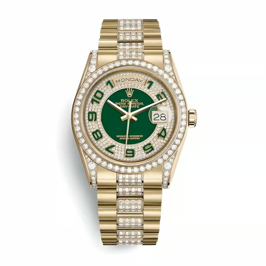 Rolex Day-Date 36mm Dial Green Yellow Gold Full Diamond 118388-0055
