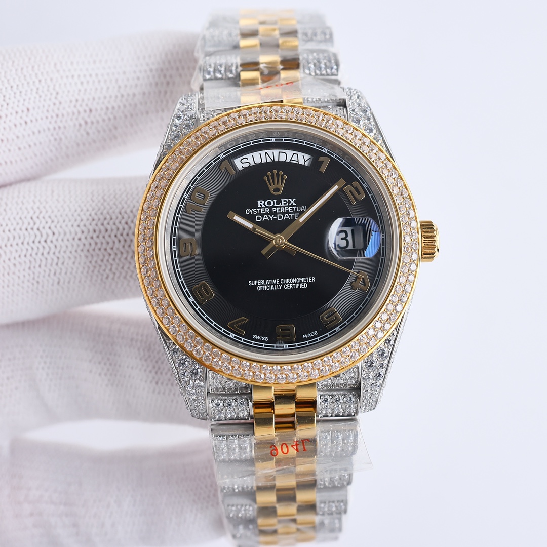Rolex Day-Date Full Diamond 40mm Luxury Black Dial