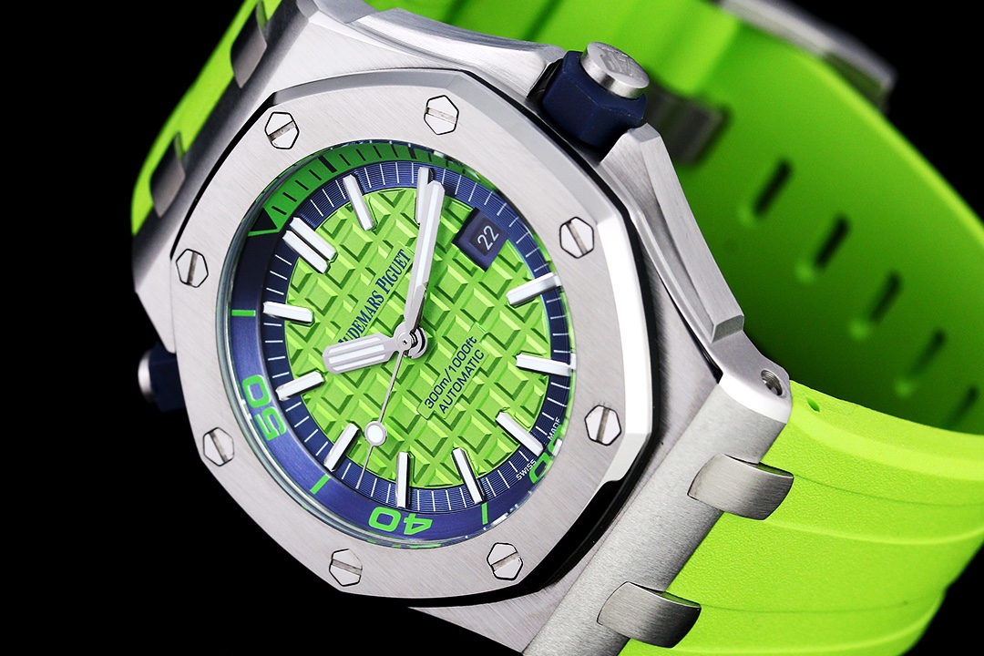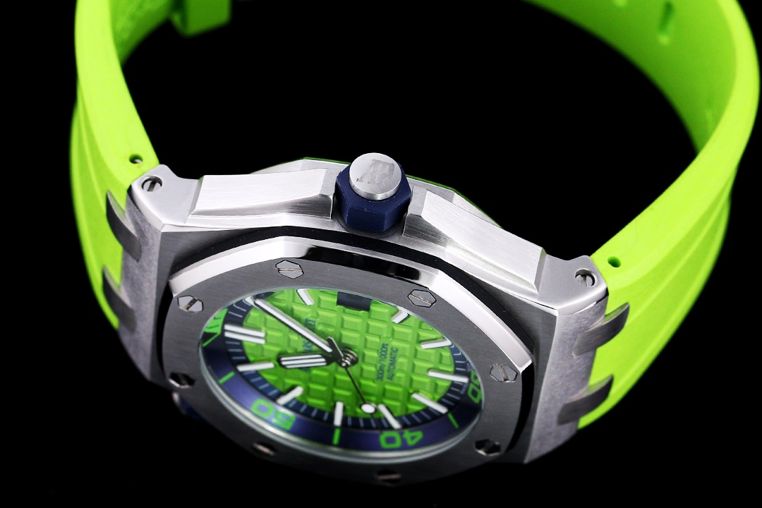 | Audemars Piguet Royal Oak Offshore 42mm Green Dial Steel Bezel Green Rubber 15710ST.OO.A038CA.01 | |