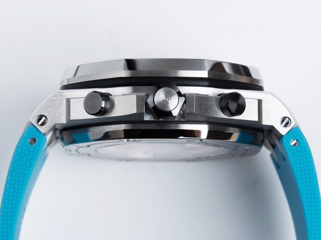 • Audemars Piguet Royal Oak Offshore Chronograph 42mm Blue Black Dial Steel Bezel Blue Rubber 26238ST.OO.A340CA.01