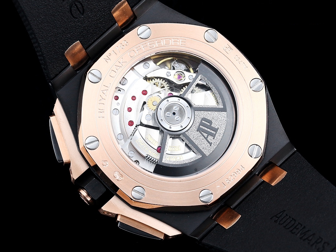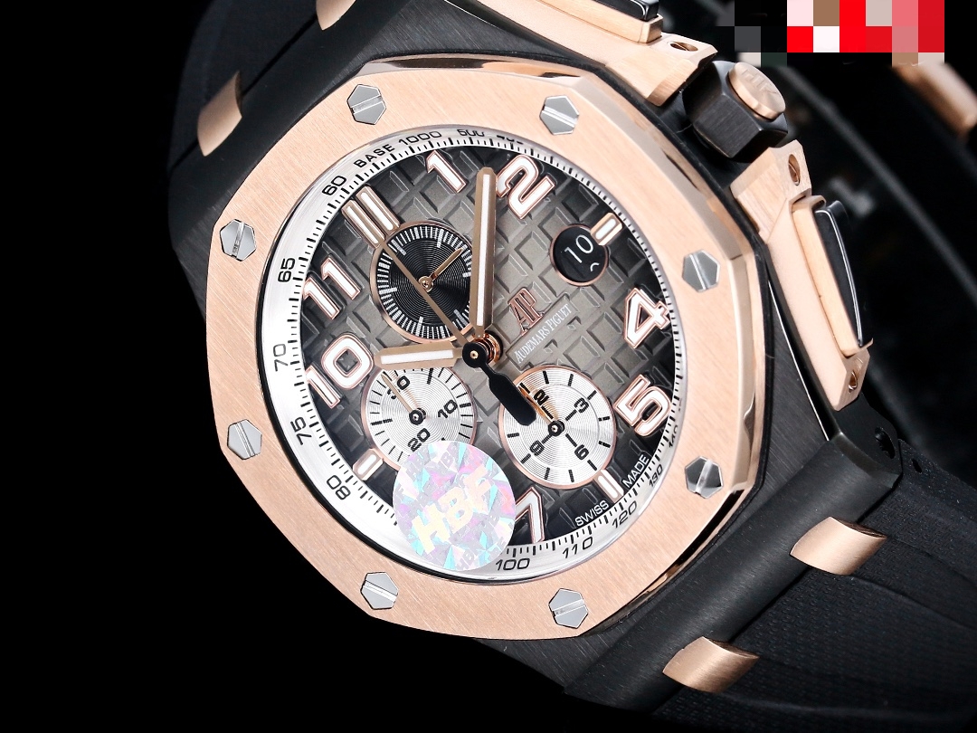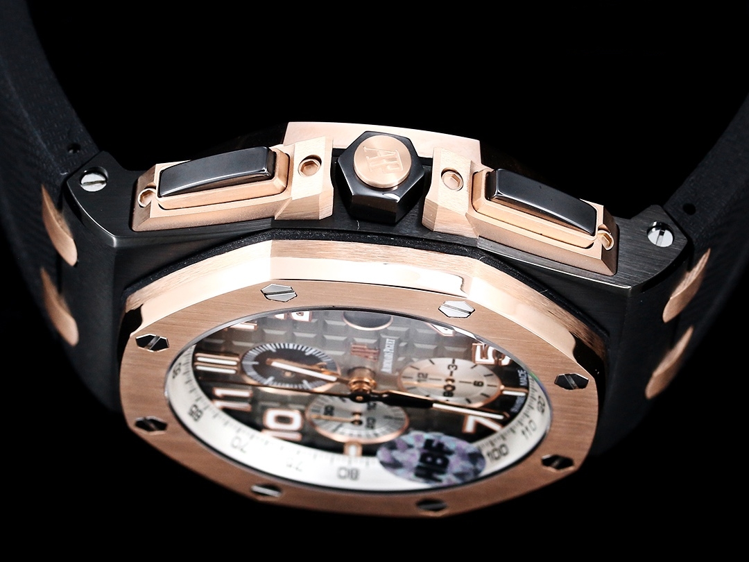 | Audemars Piguet Royal Oak Offshore Chronograph 44mm Black Silver Dial Rose Gold Bezel Black Rubber 26405NR.OO.A002CA.01 | |