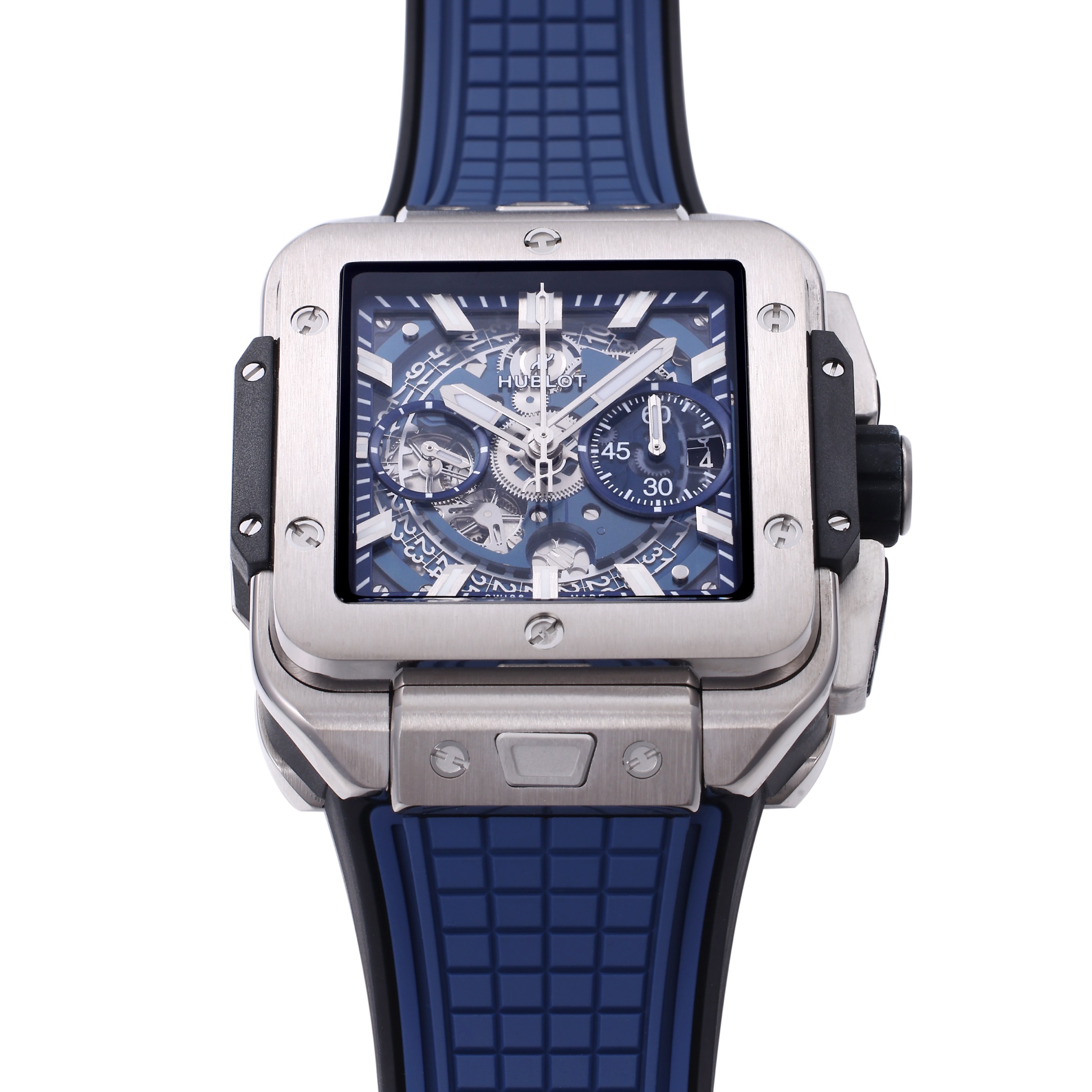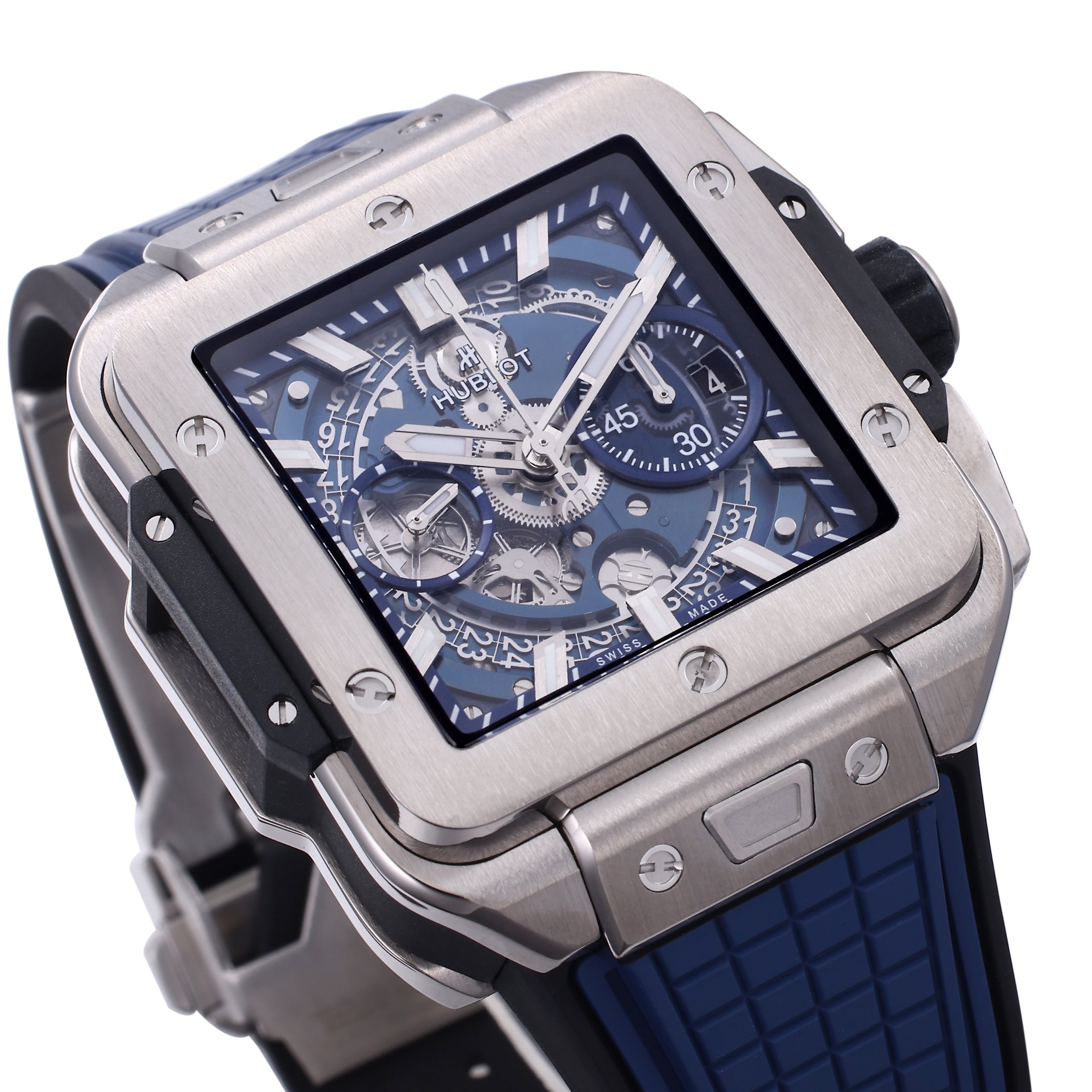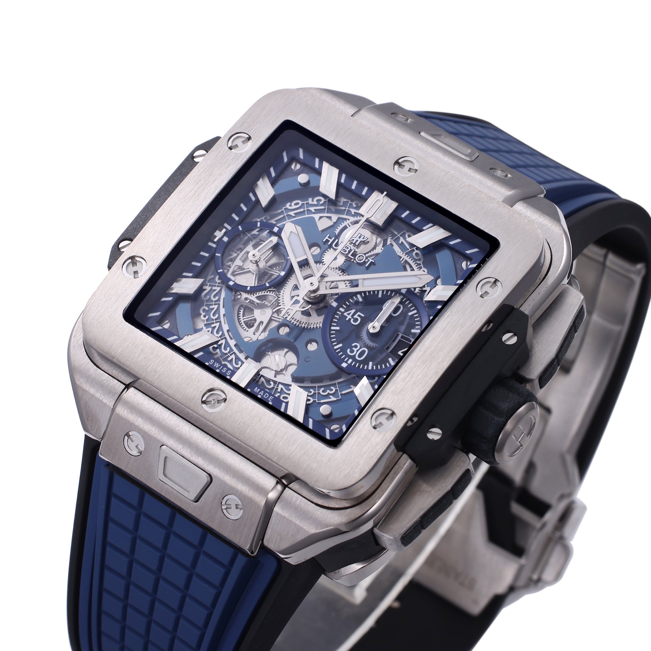 | Hublot Square Bang Unico 42mm Grey Dial Steel Bezel Blue Rubber Strap 821.NX.5170.RX | |
