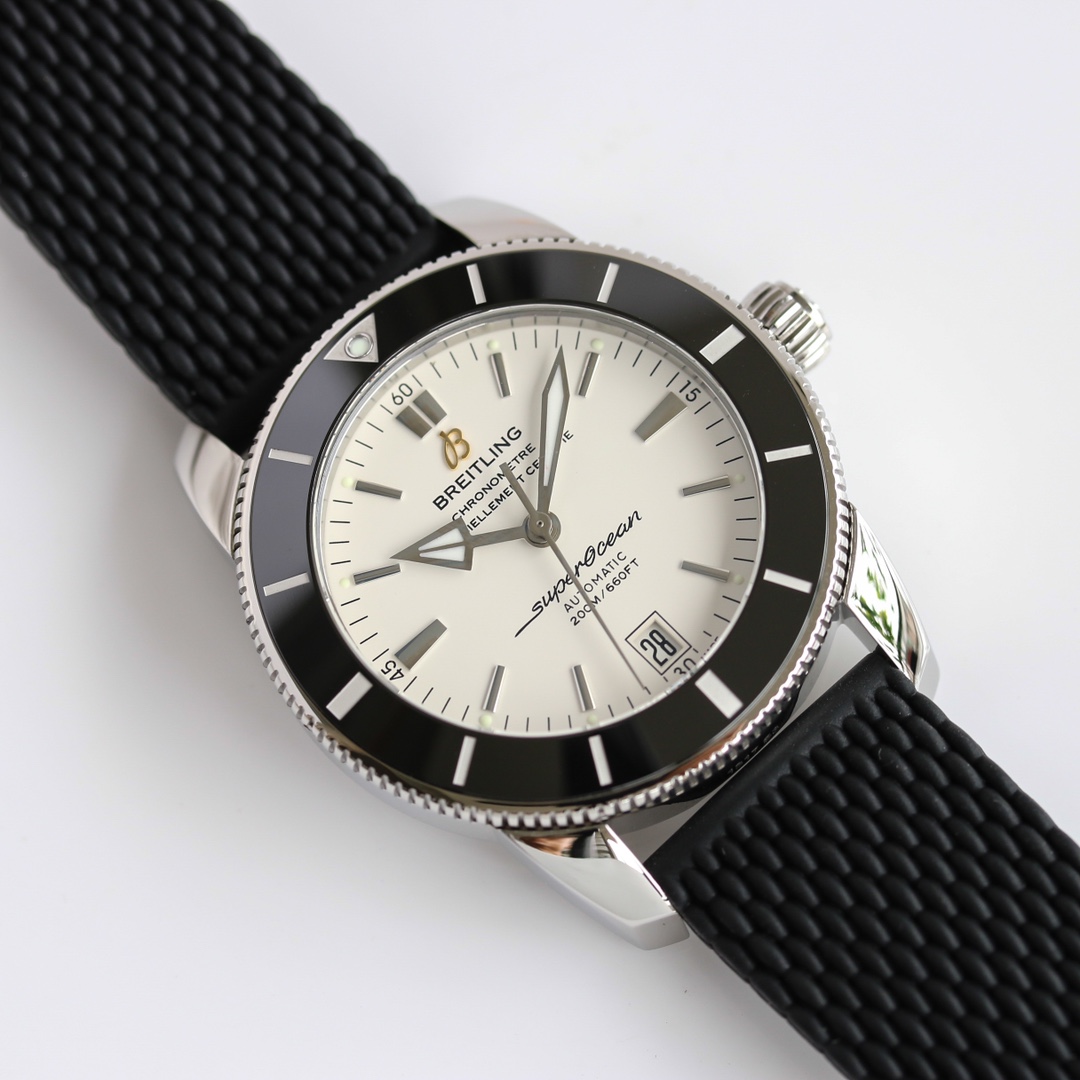 | Breitling SuperOcean Héritage 42mm White Dial Black Steel Bezel Black Rubber Strap AB201012.G827.154X | |