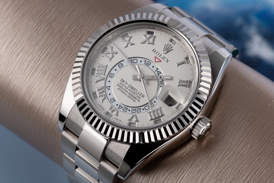 | Rolex Sky-Dweller 42mm Ivory Dial Platinum Bezel Roman Number 326939-72419 | |