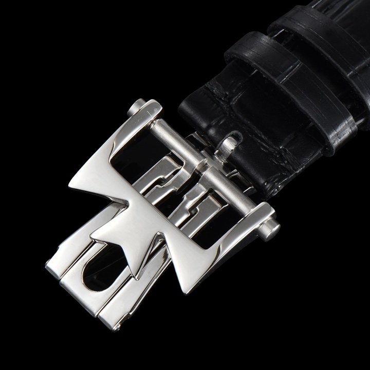 [Strap Buckle] The plaid Italian imported calf leather strap features a precision steel folding buckle in a semi Maltese cross shape, polished to exude understated elegance.