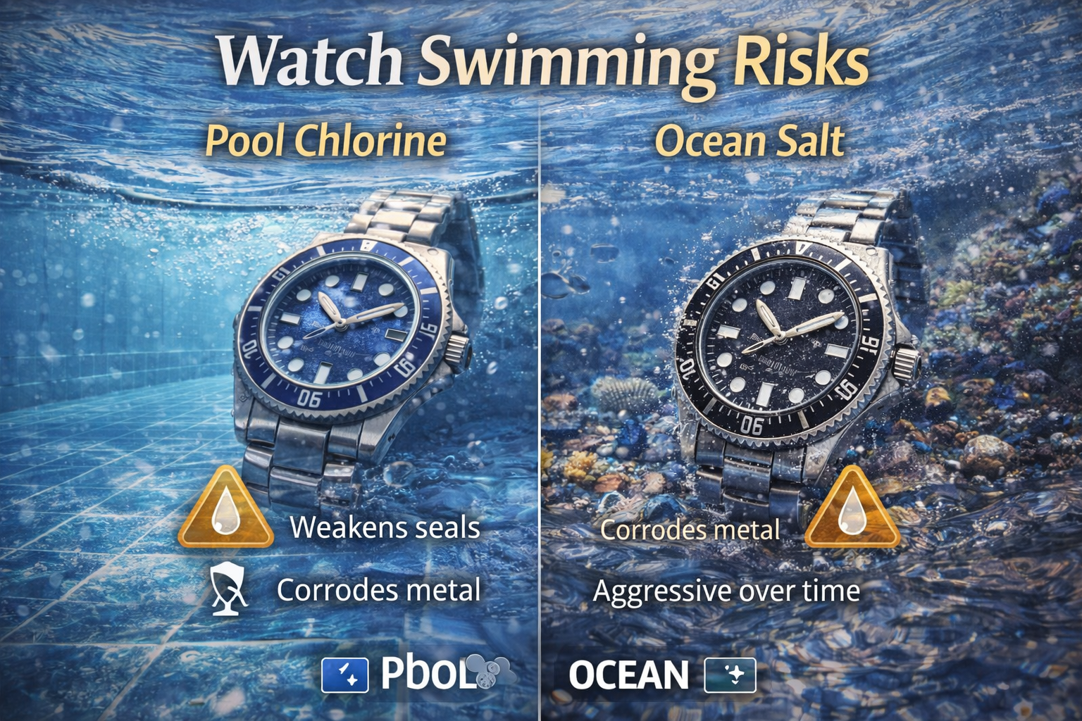 Pool water and ocean water create very different risks, and misunderstanding those differences is one of the most common causes of preventable watch damage.