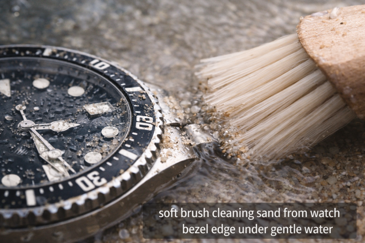 If sand gets into your watch bezel, don’t force-rotate it and don’t use high-pressure water. The safest approach is to rinse with gentle fresh water (only if the crown is sealed), soak briefly, then use a soft brush to lift grit away. If the bezel remains gritty, clicks feel uneven, or you hear grinding, stop and have it cleaned professionally—forcing it can scratch parts and weaken seals.