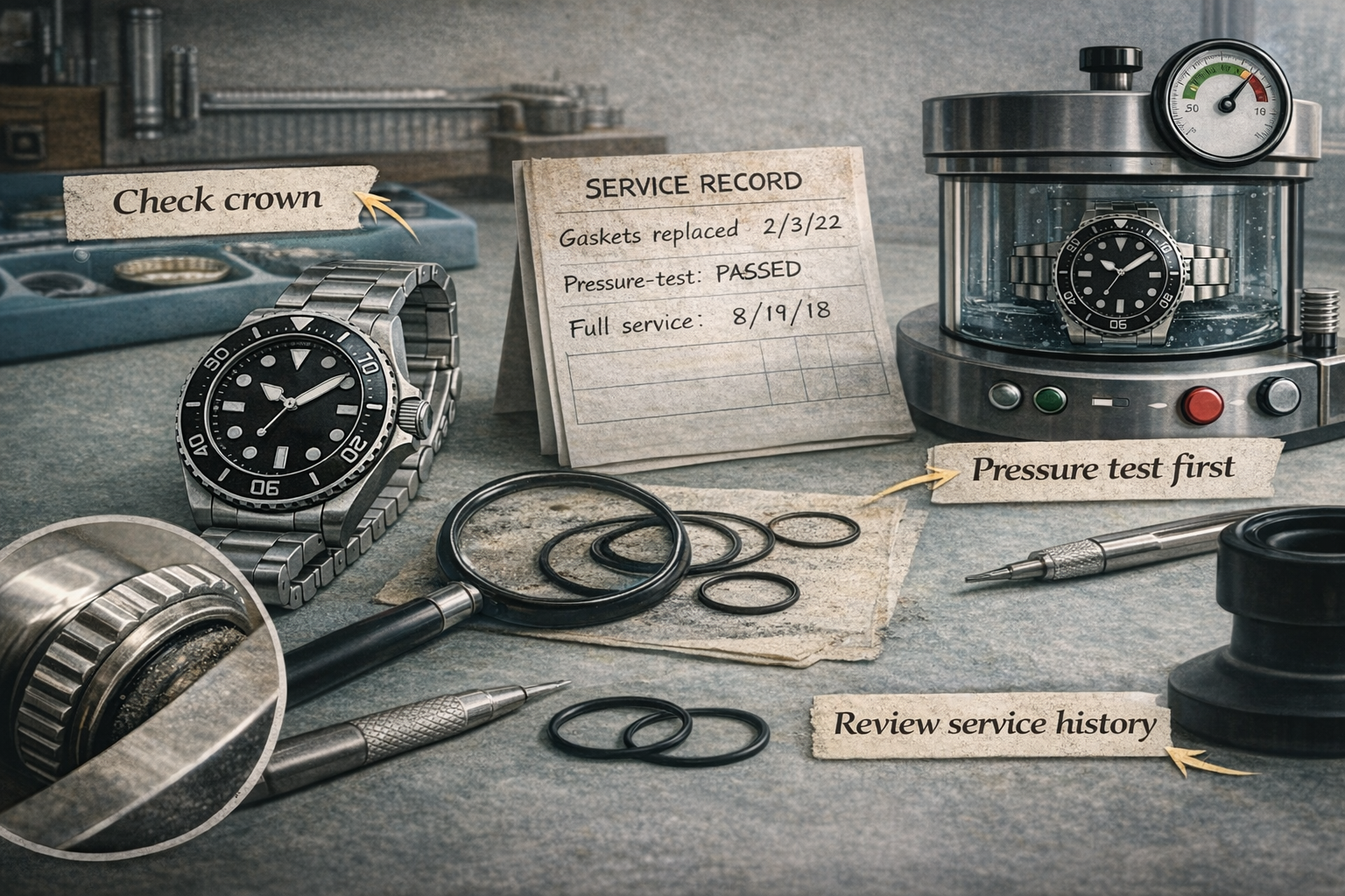 A used dive watch is not water-ready because it is a dive watch. It is water-ready when current evidence says it is.