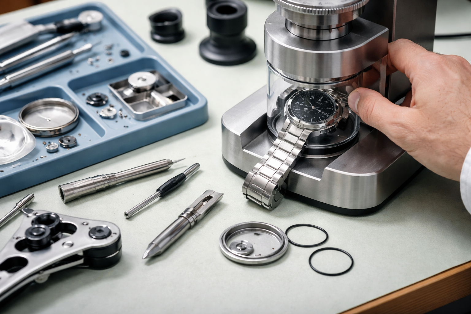 It helps confirm whether the watch case is still sealing correctly under pressure conditions relevant to water resistance. Depending on the test method and the watch, it can help reveal whether the caseback, crystal, crown system, and gaskets are still doing their job.