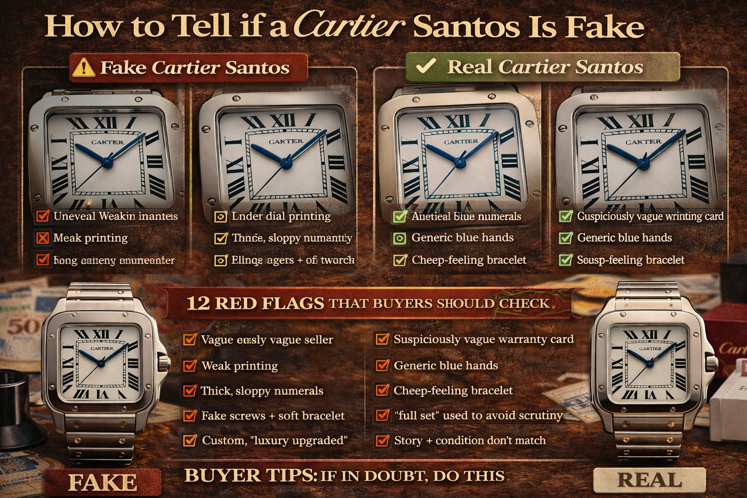 And because the Santos sits in a dangerous sweet spot—luxury, recognizable, wearable, and often bought pre-owned—it attracts exactly the kind of listings that make normal buyers second-guess themselves.