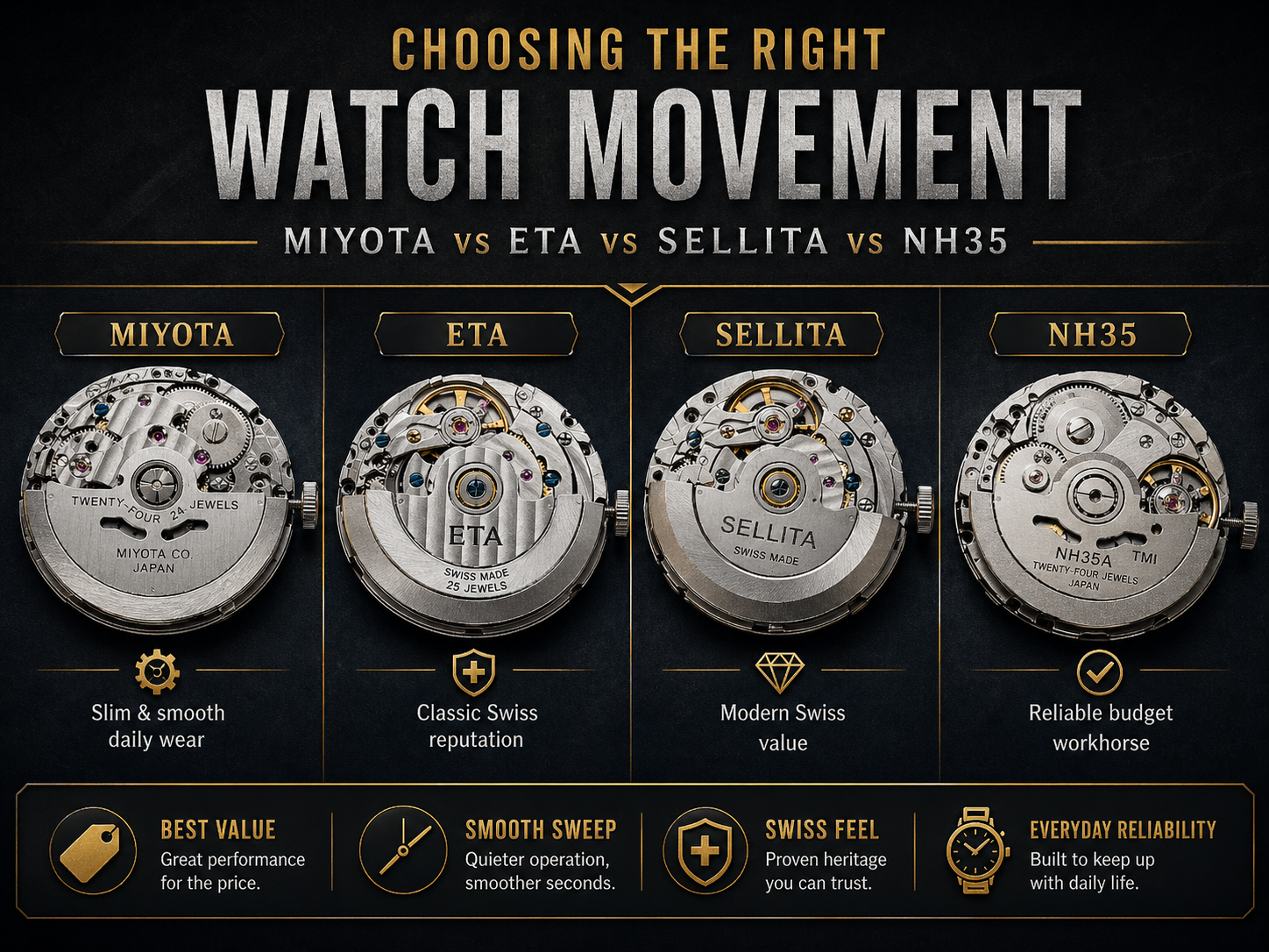 Miyota vs ETA vs Sellita vs NH35: Watch Movements Explained for Real Buyers
