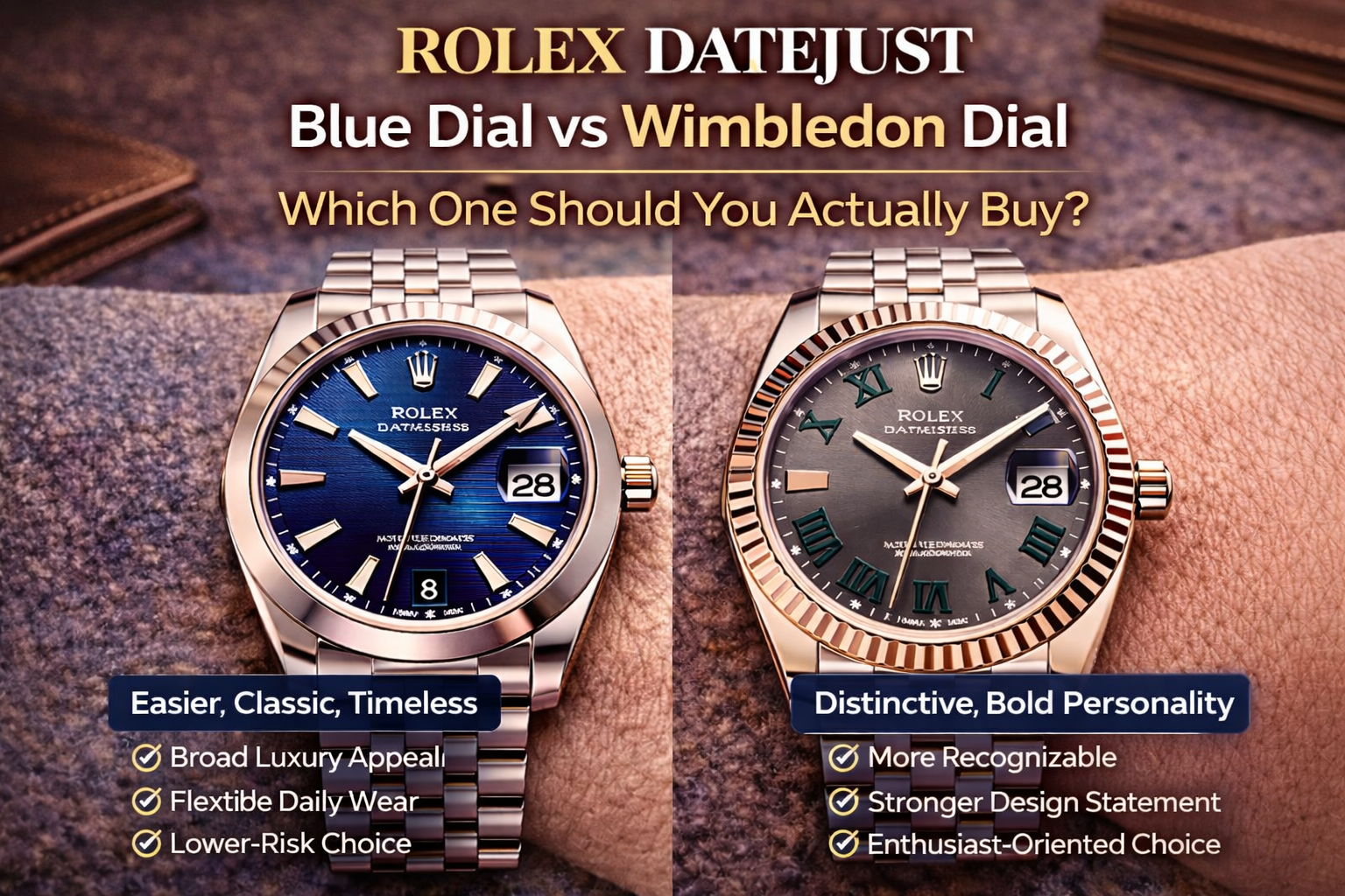 And once the choice becomes blue dial vs Wimbledon dial, the decision gets a lot more personal than many buyers expect.