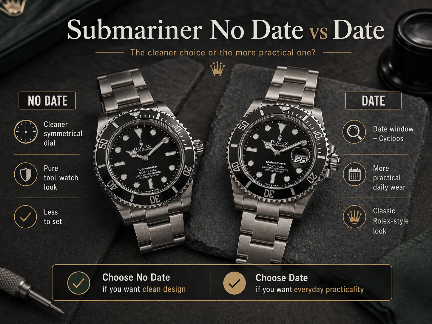 - Rolex Submariner No Date vs Date: Which One Should You Actually Buy?