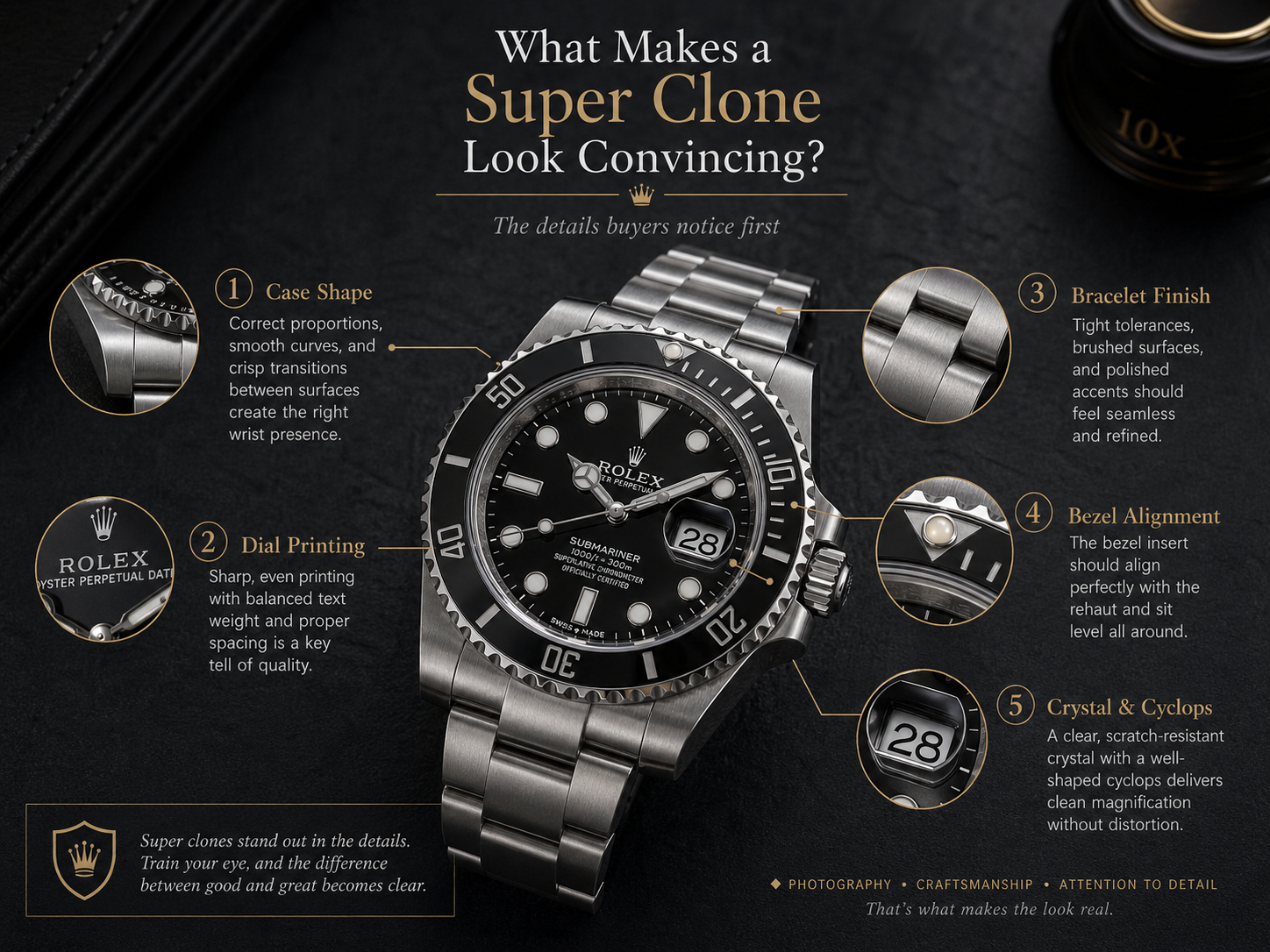 A super clone can give style and wrist presence. It does not give official brand ownership. Knowing this upfront makes the experience much more satisfying.