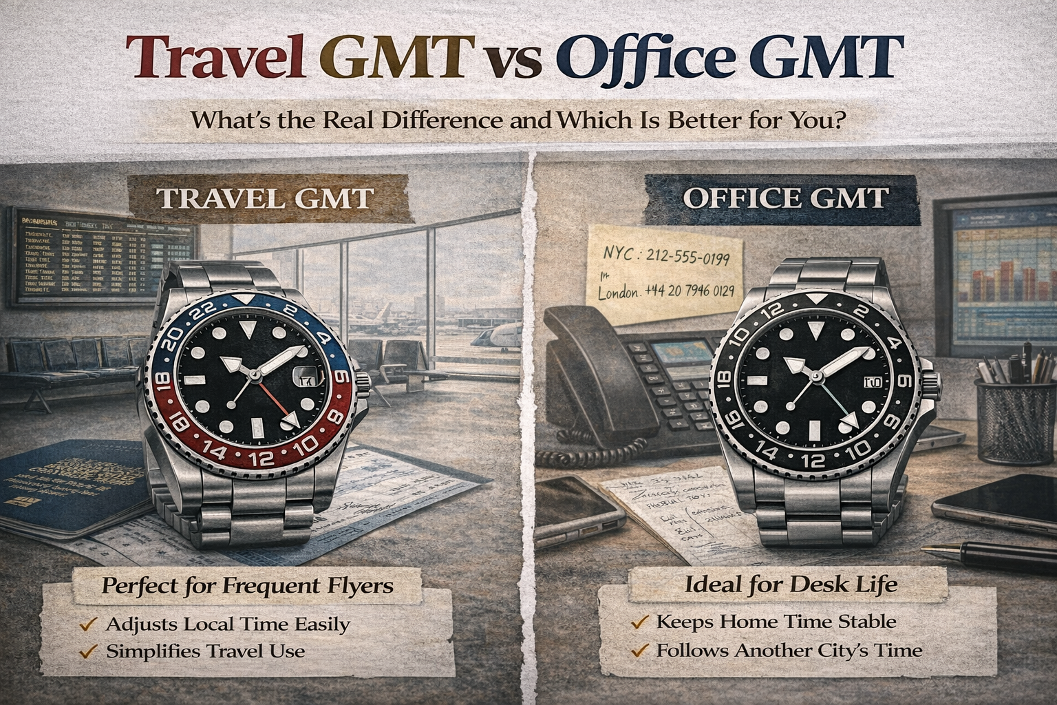 In many cases, office GMTs are easier to justify for buyers who want the GMT look and utility without making their purchase decision entirely around travel-focused functionality.