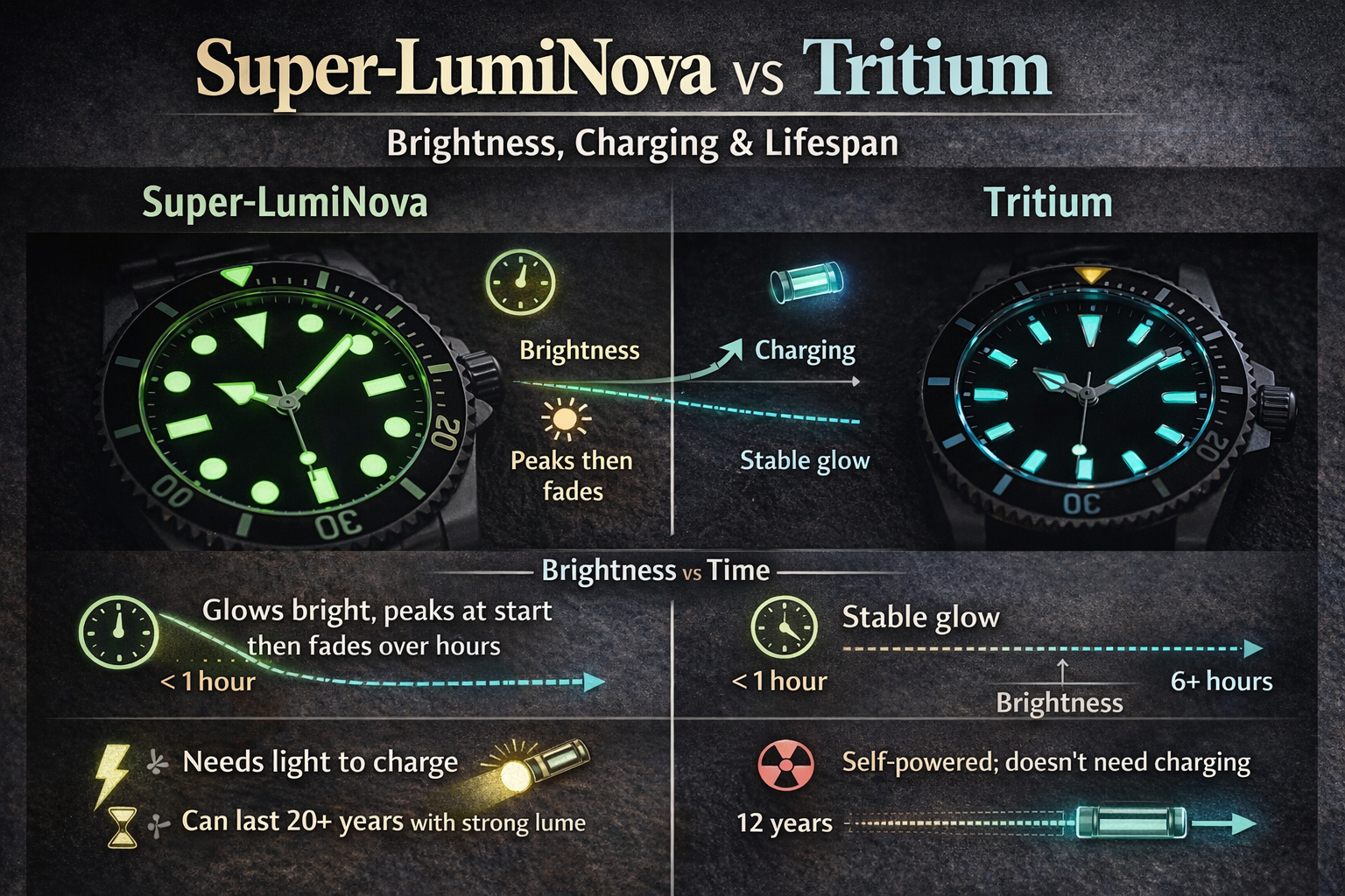 Watch Lume Guide: Super-LumiNova vs Tritium (Brightness, Lifespan & Safety)