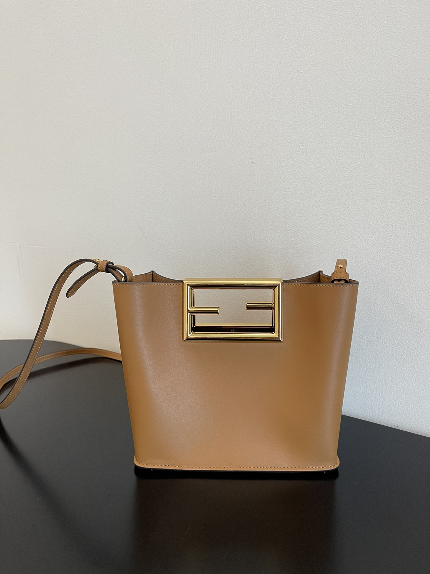 • Fendi Double F Buckle Handbag, Caramel Calfskin
