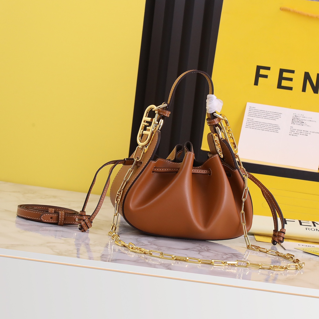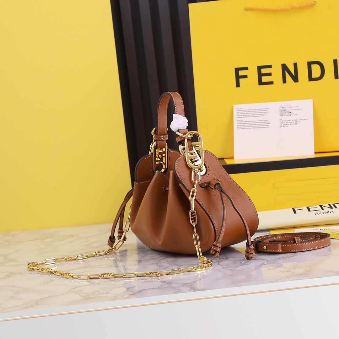 Fendi Leather Dumpling Bag with Drawstring