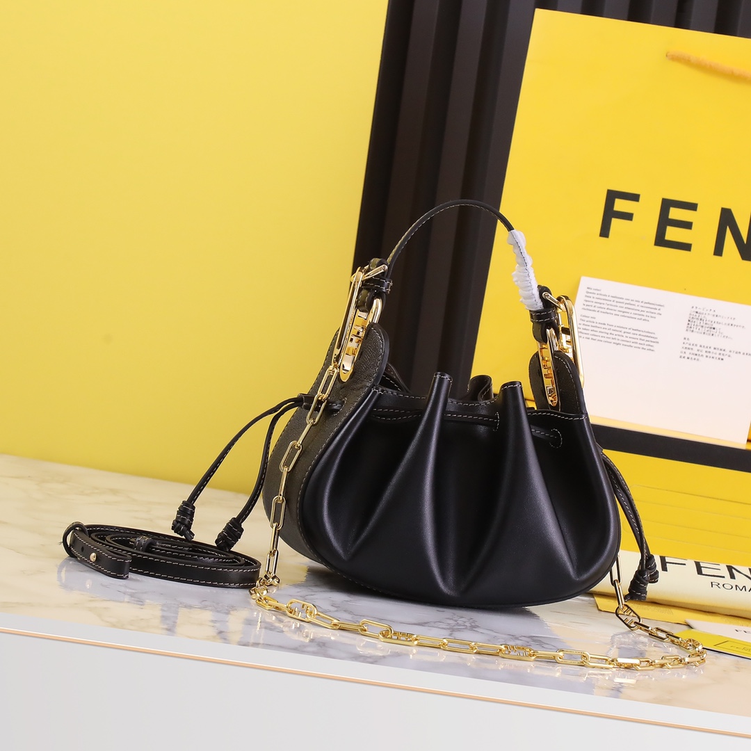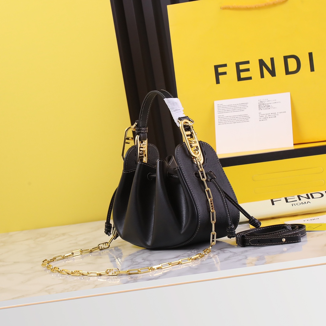 Fendi Leather Dumpling Bag, Calfskin with Drawstring, Black
