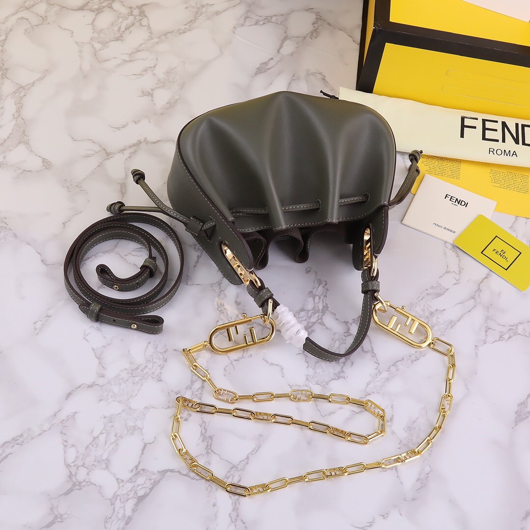 Fendi Leather Dumpling Bag, Calfskin with Drawstring, Dark Green