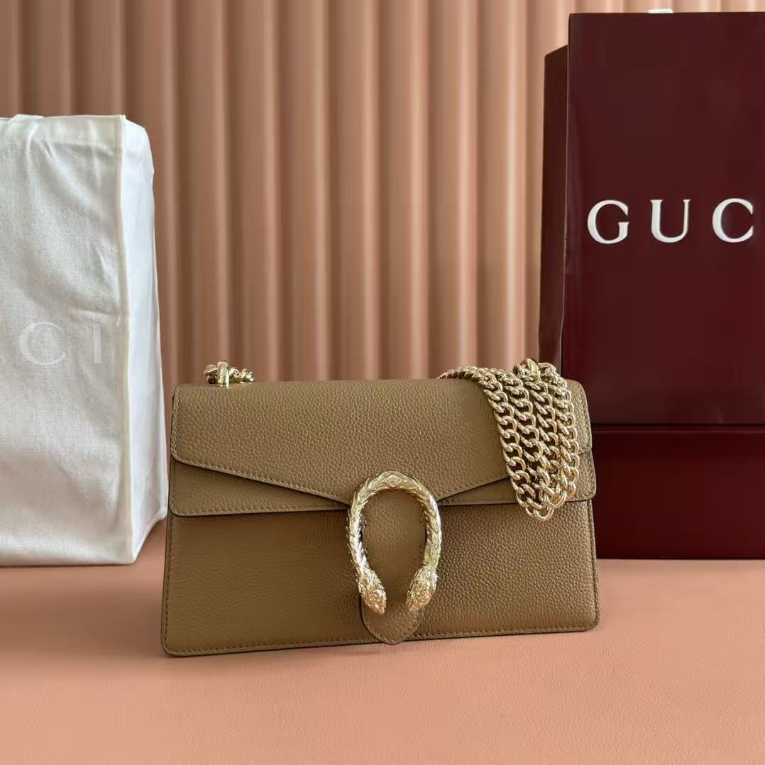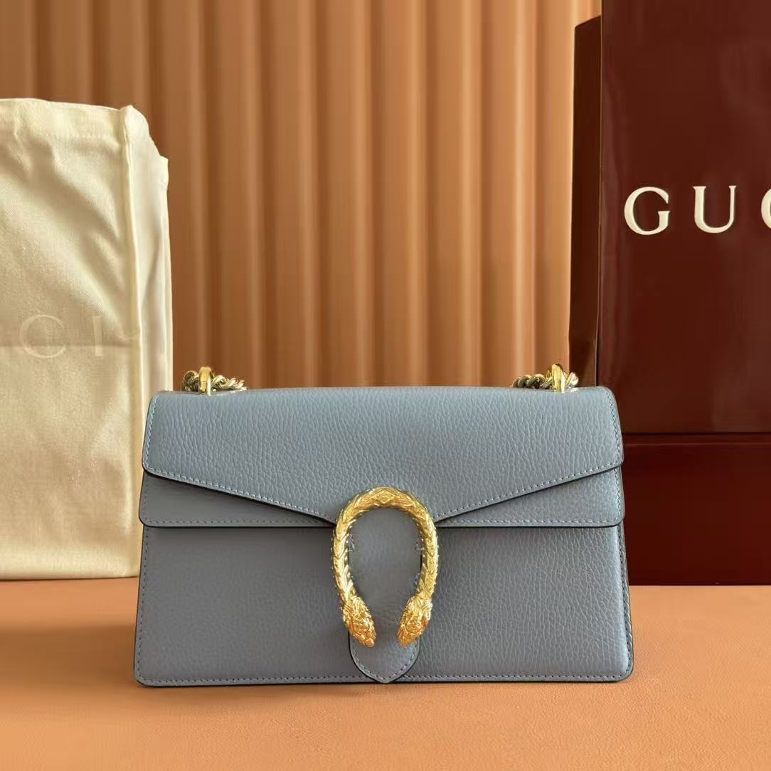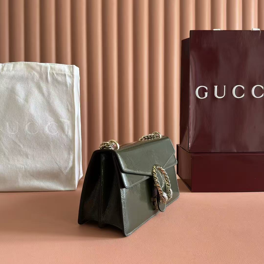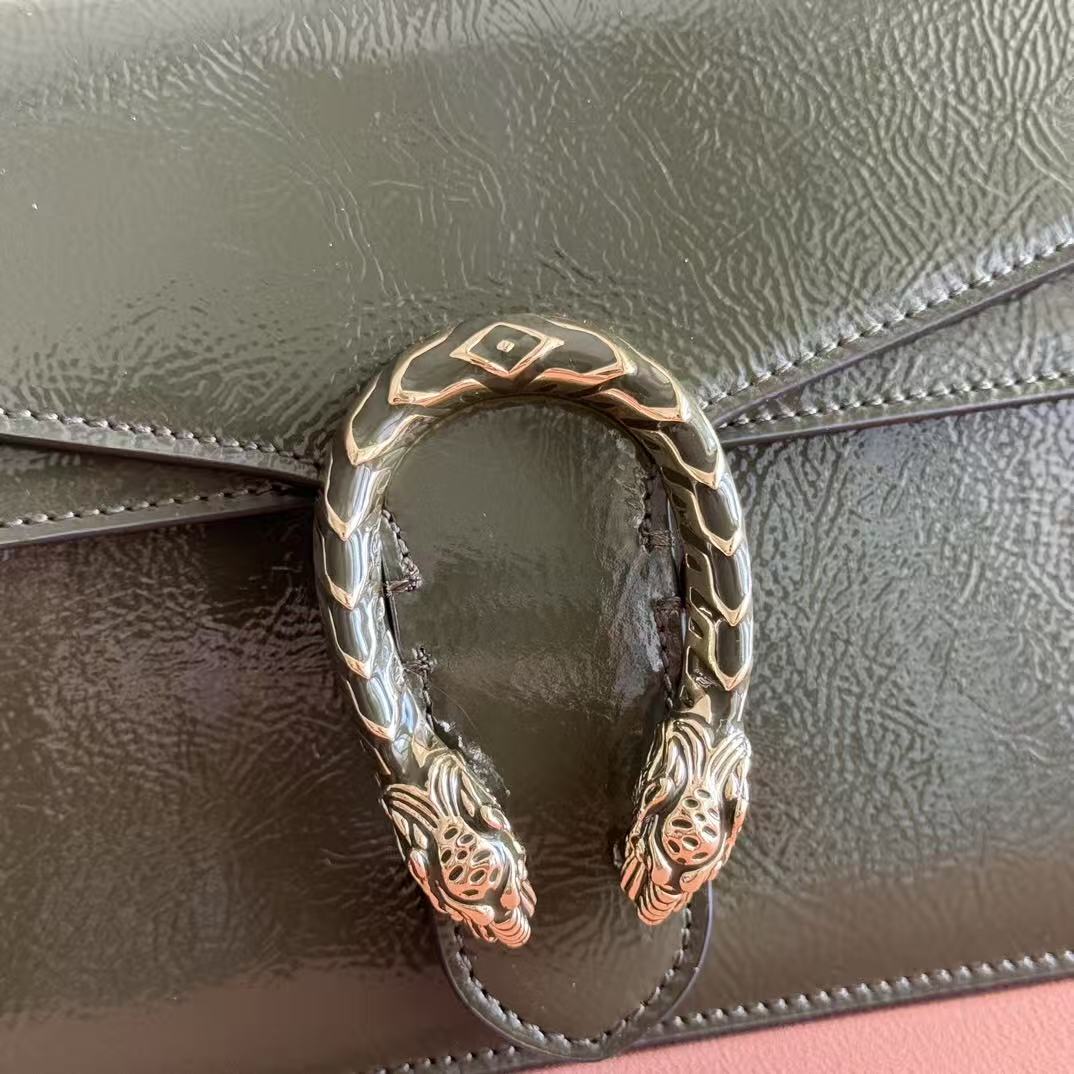This new addition to the Dionysus collection is expertly crafted from black cowhide leather. It features a double tiger head lock with a flap and an adjustable sliding chain for versatile styling.