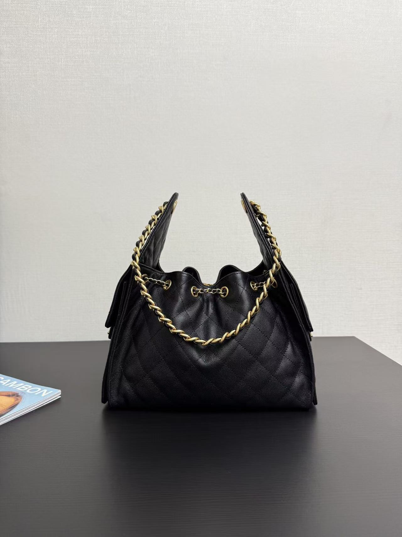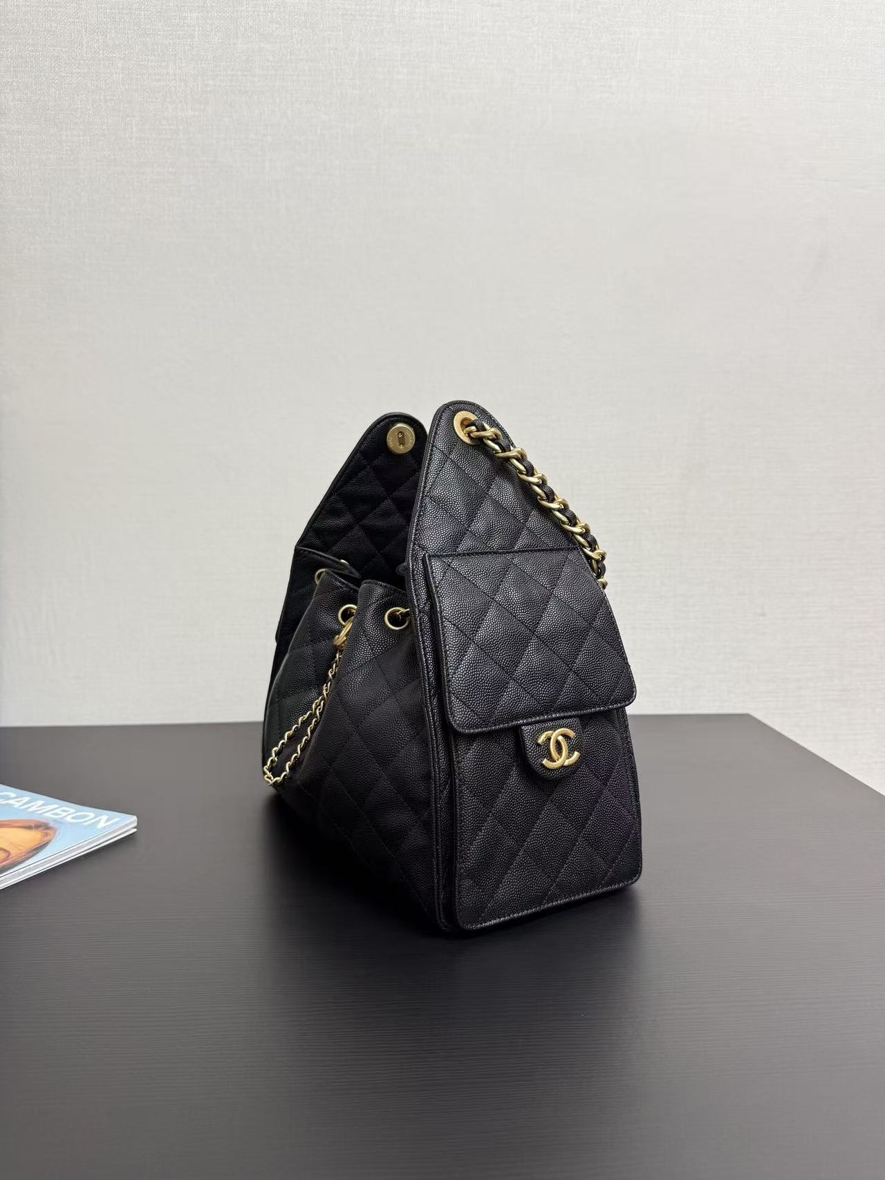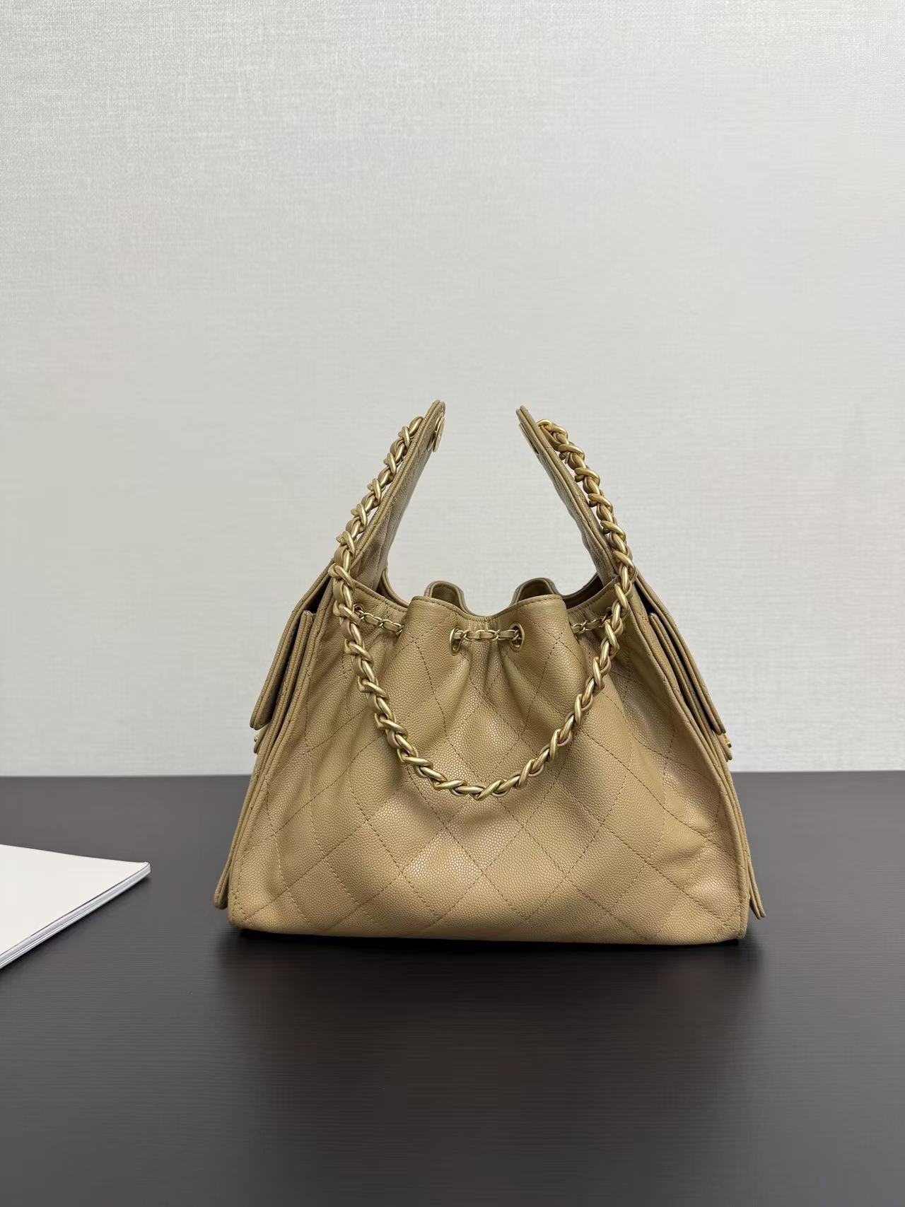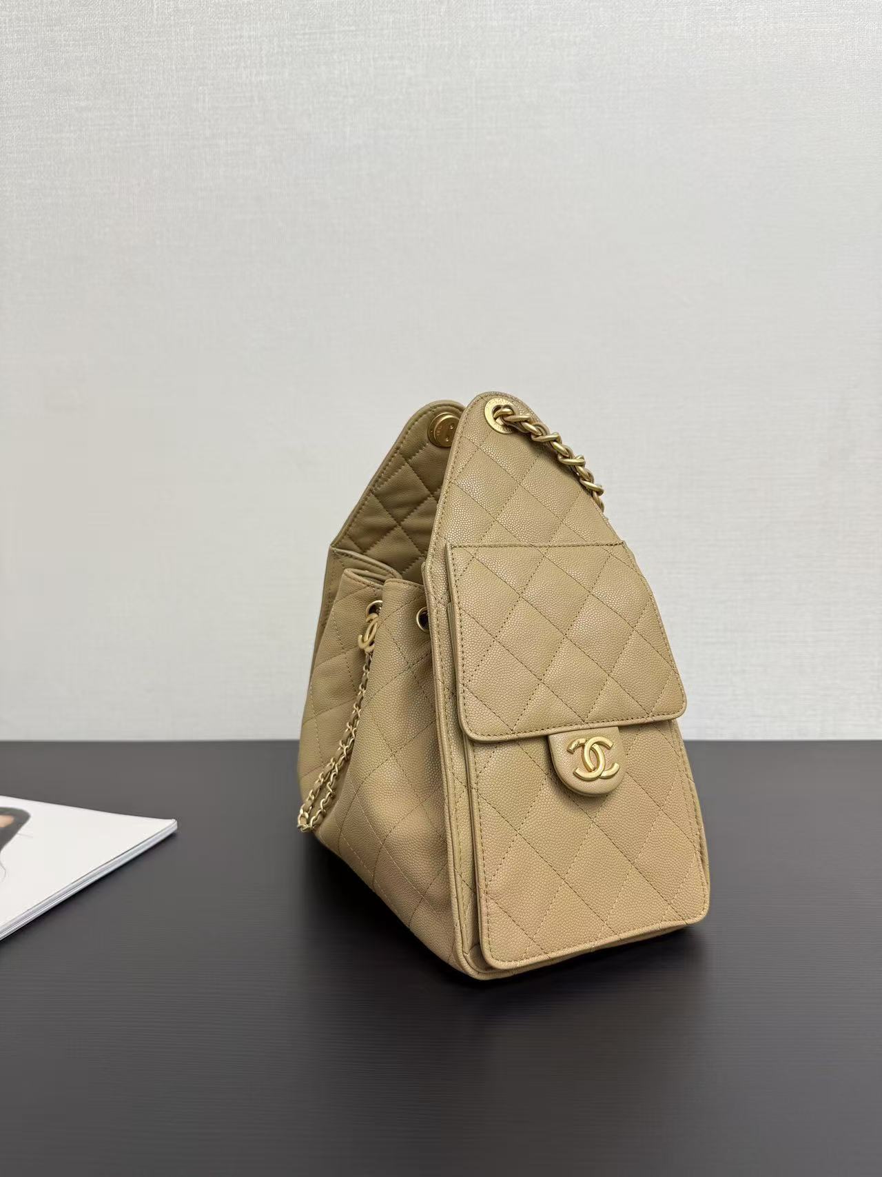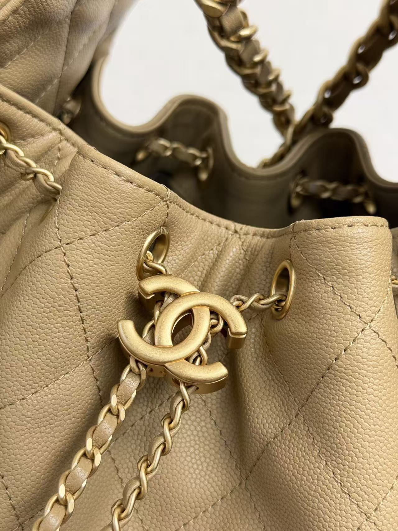 Chanel 25A Bucket Drawstring Bag, Caviar Small, Medium, 99442, Light Brown