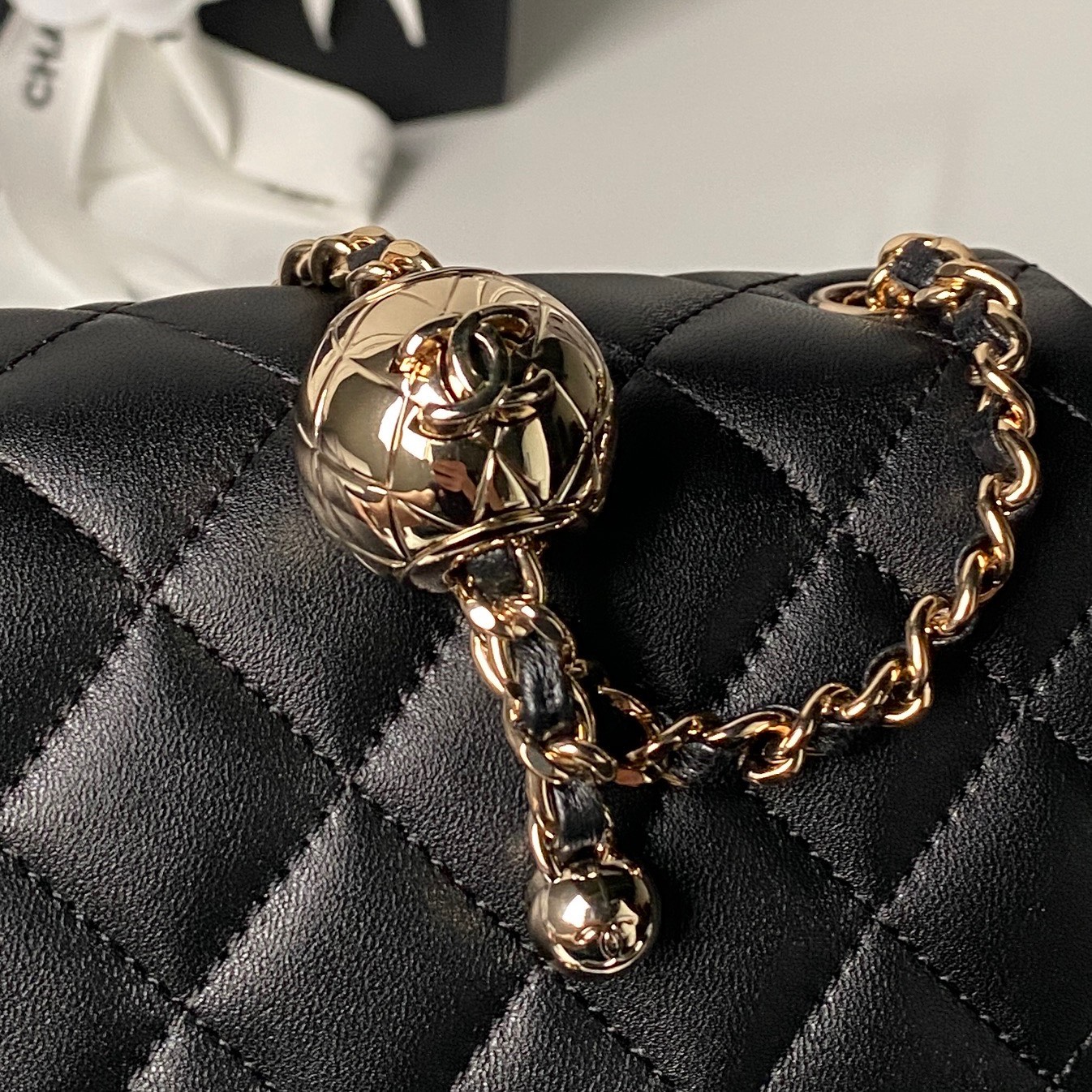 The vintage gold ball is even brighter and more sparkly. A small gold ball has been added to the chain, making it not only retro and beautiful, but also allowing for chain length adjustment. It can be worn as a waist bag or over the shoulder/crossbody. So exquisite and perfect!