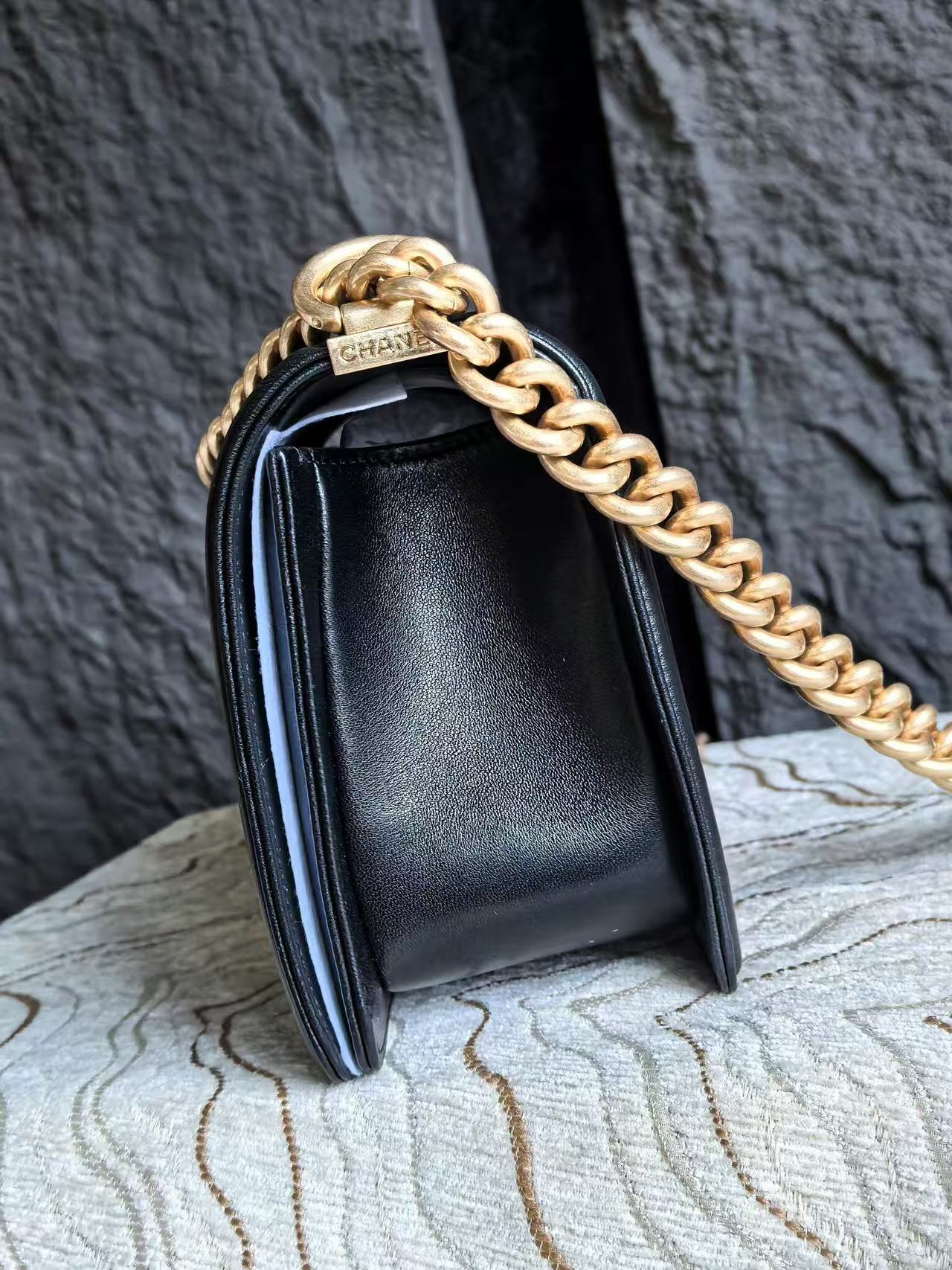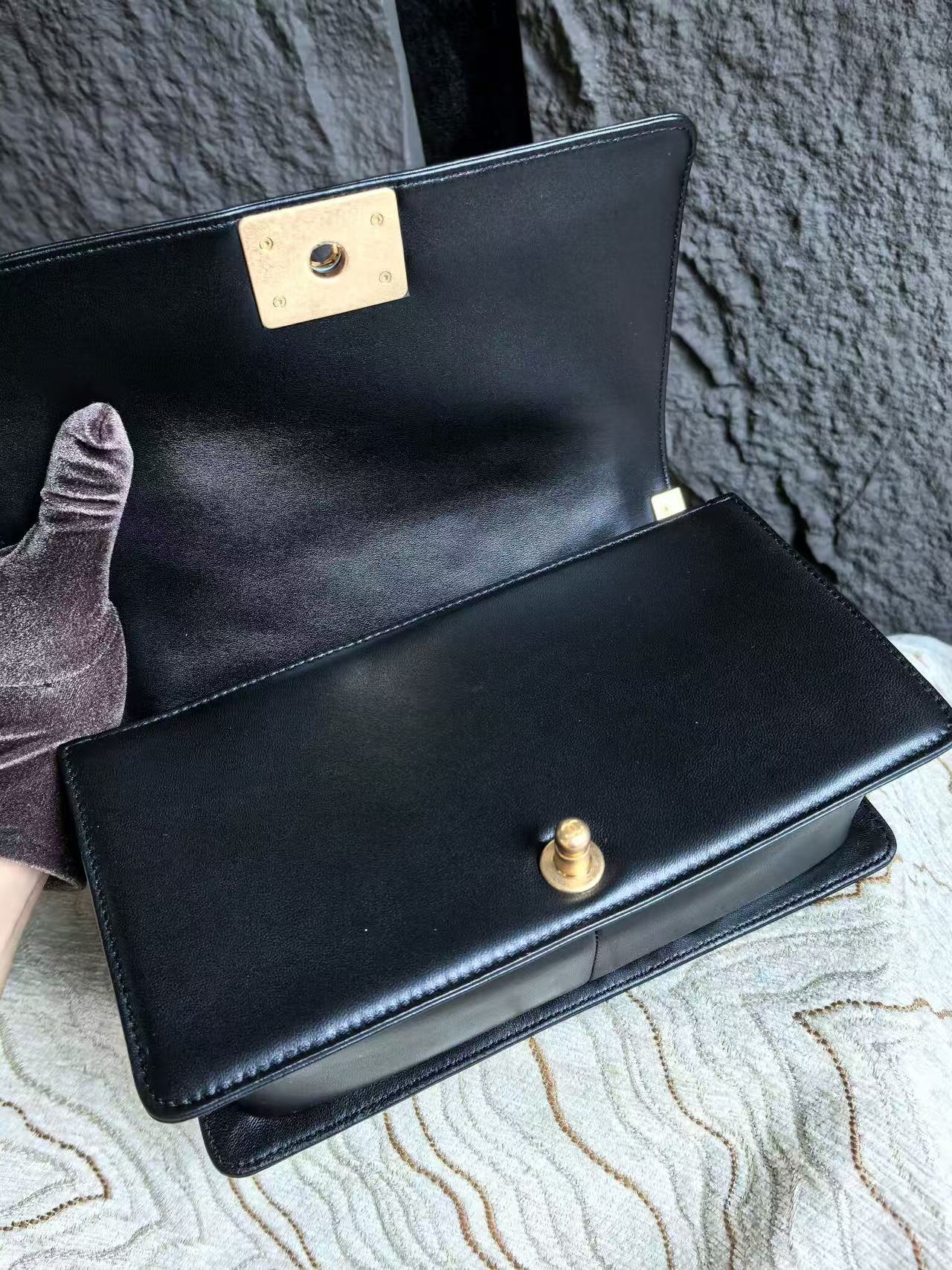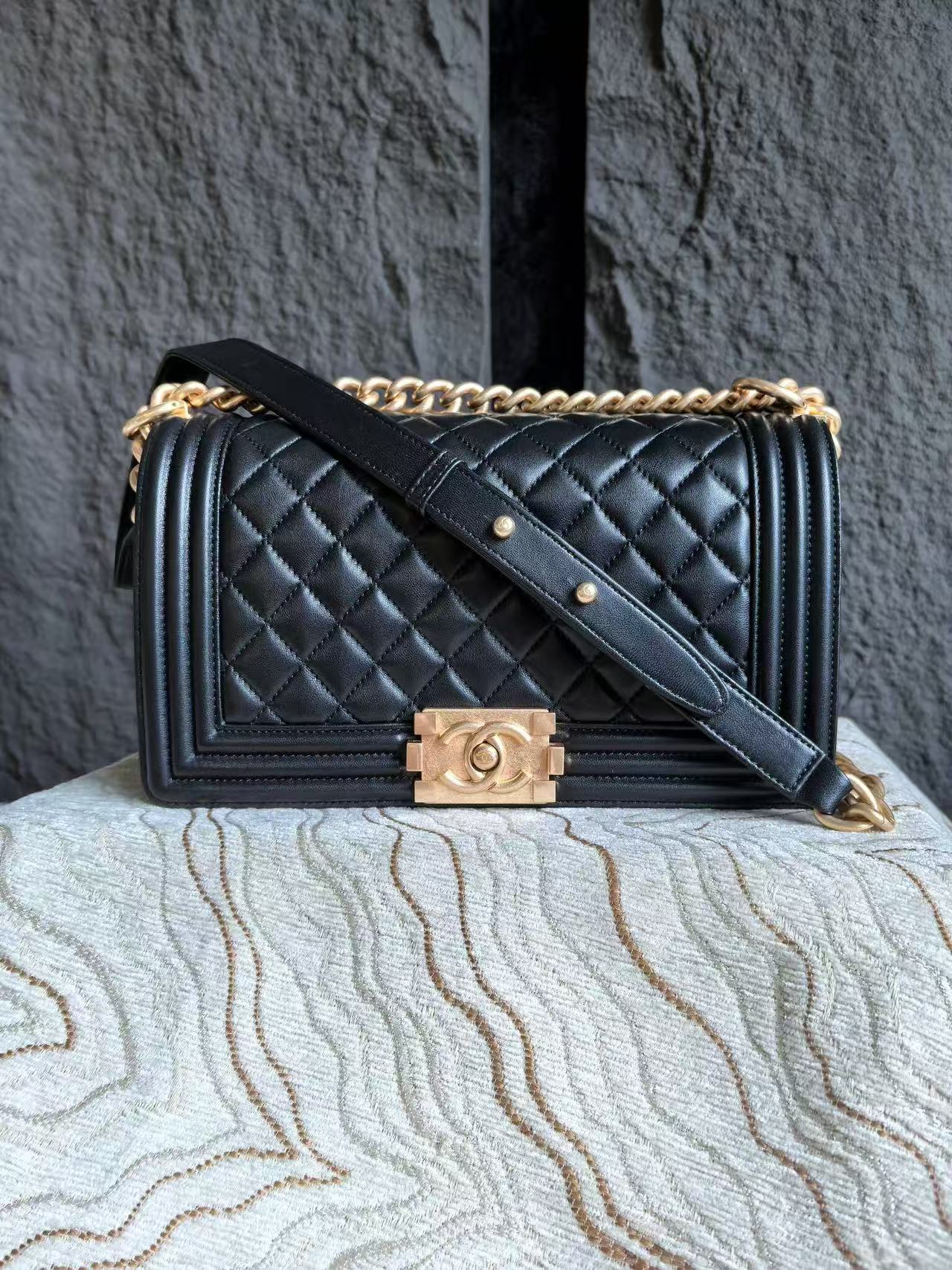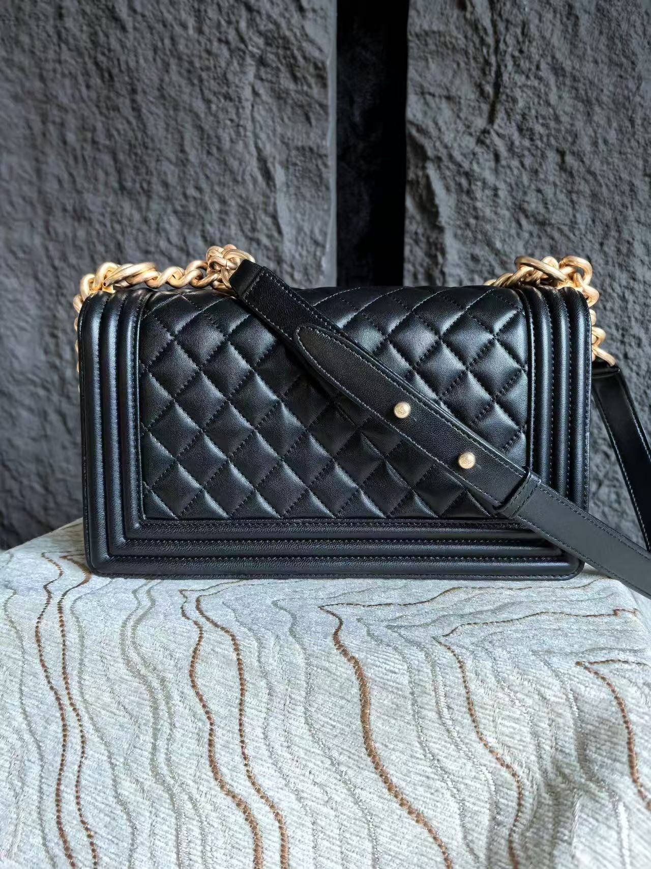 Chanel A67086 Medium LEBOY Black Sheep Gold Goatskin Diamond Pattern