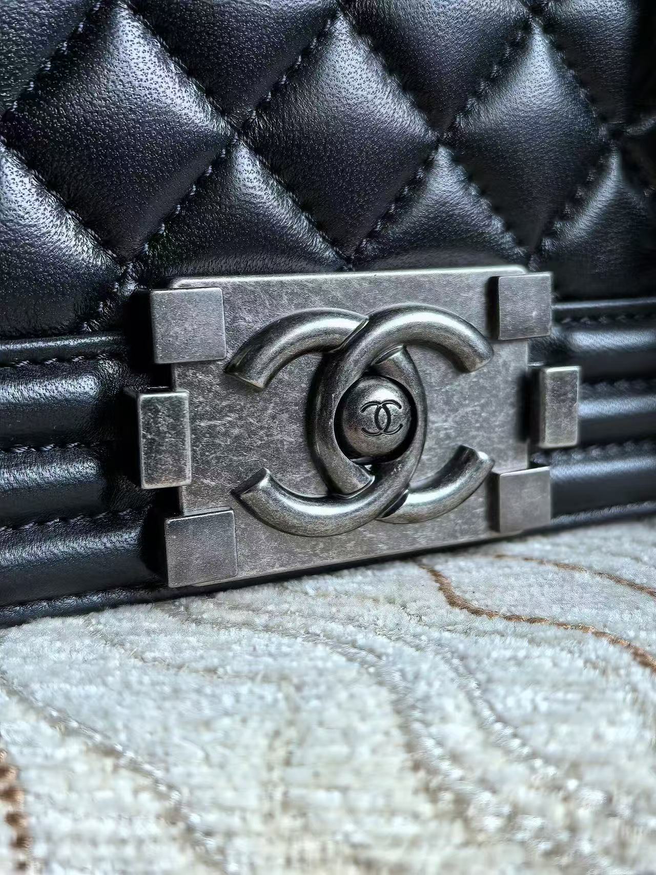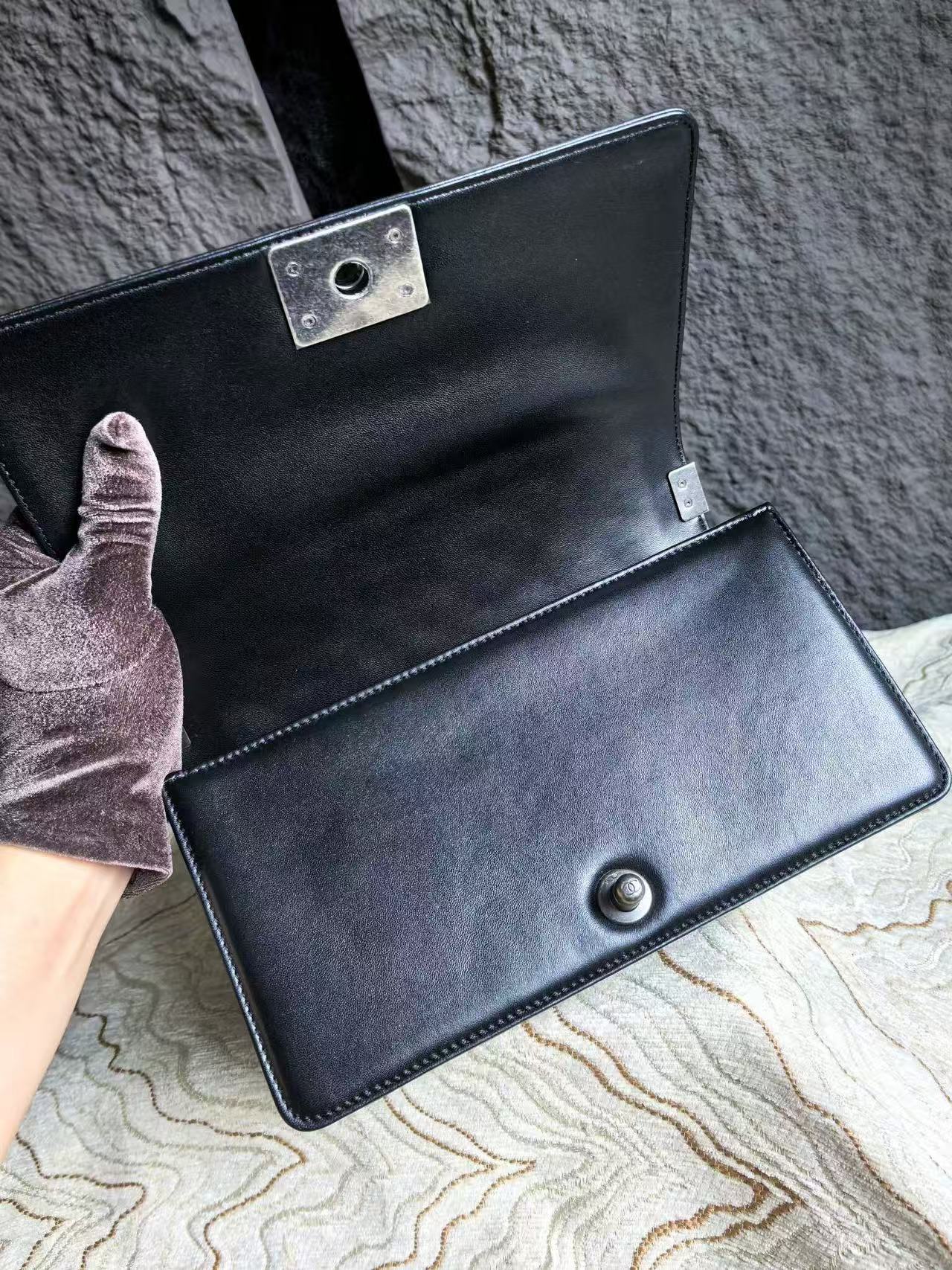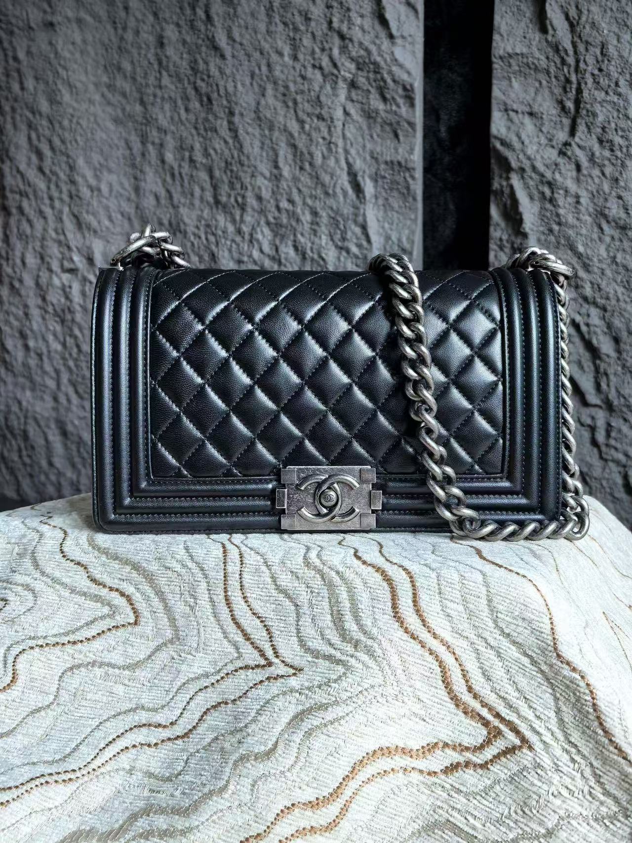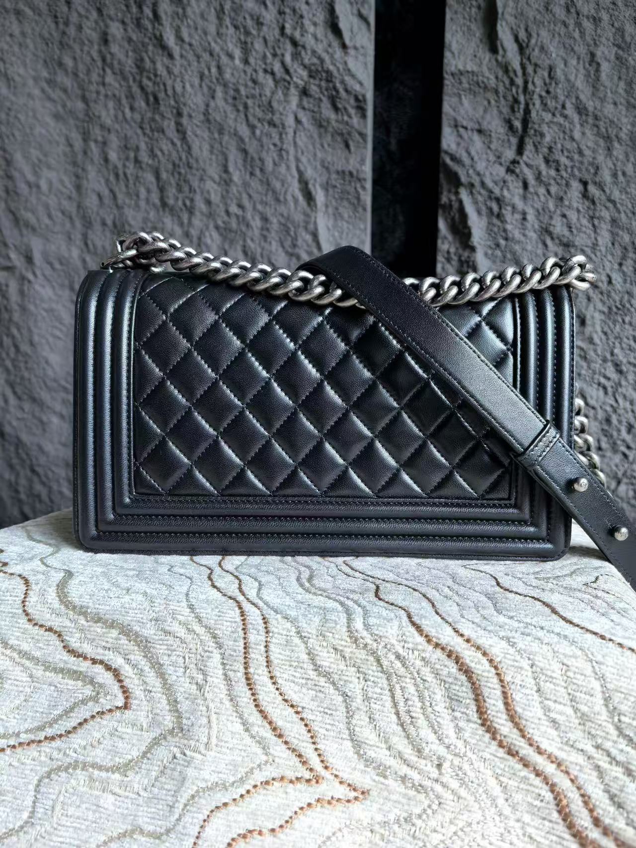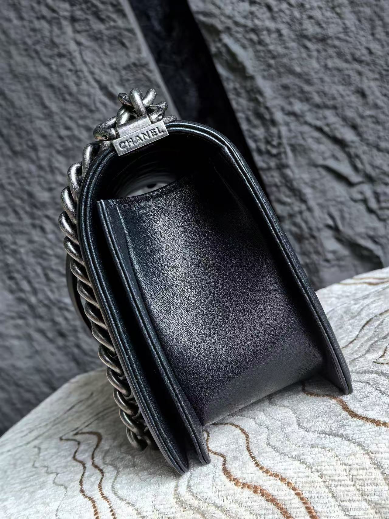 Chanel A67086 Medium LEBOY Black and Silver Goatskin Chain Bag