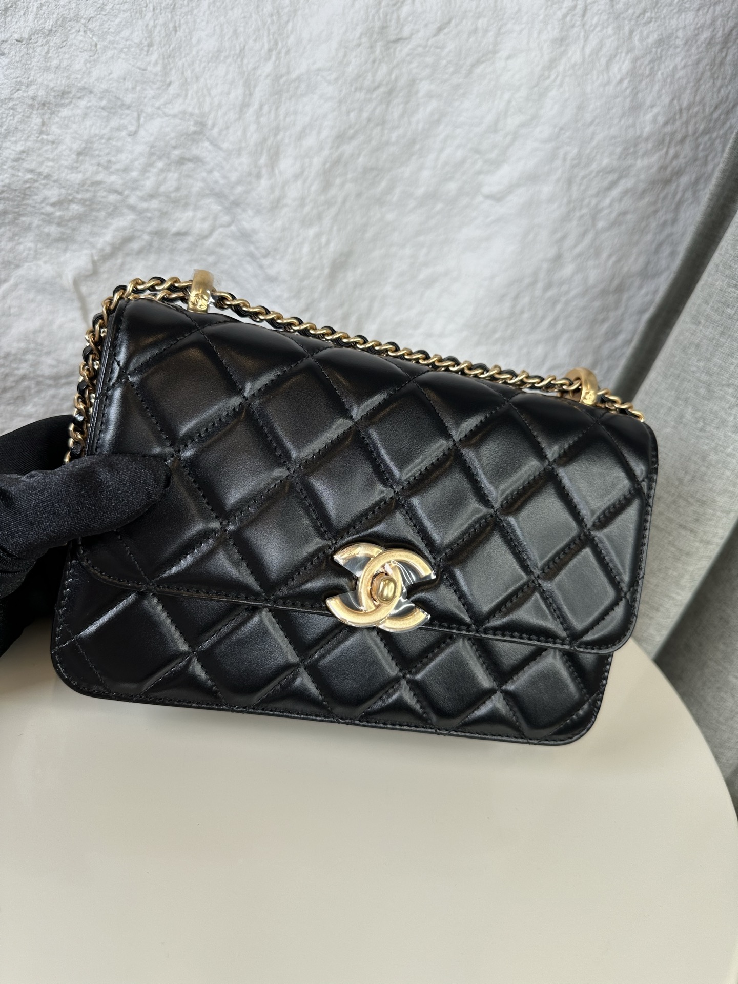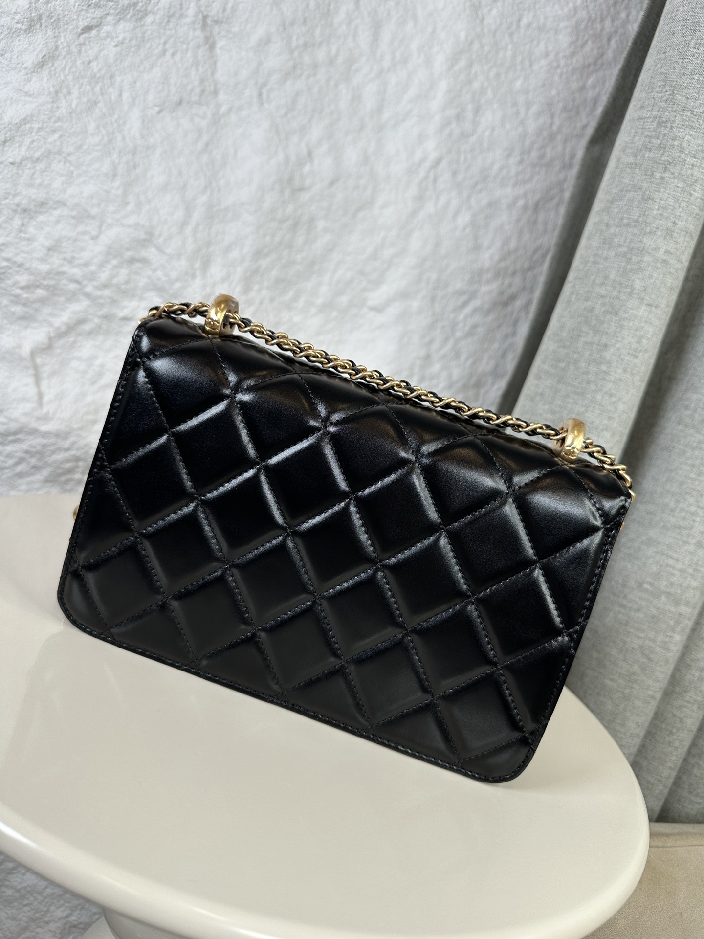 Crafted from cowhide leather, featuring the classic CHANEL quilted pattern, this piece is incredibly versatile! The smooth cowhide shimmers in the sunlight, giving it a vintage feel. The double gold beads are exquisitely detailed, and the finely engraved double C logo adds a touch of sophistication. The chain is adjustable to your desired length, allowing for various styling options! Available in multiple colors to suit different occasions.