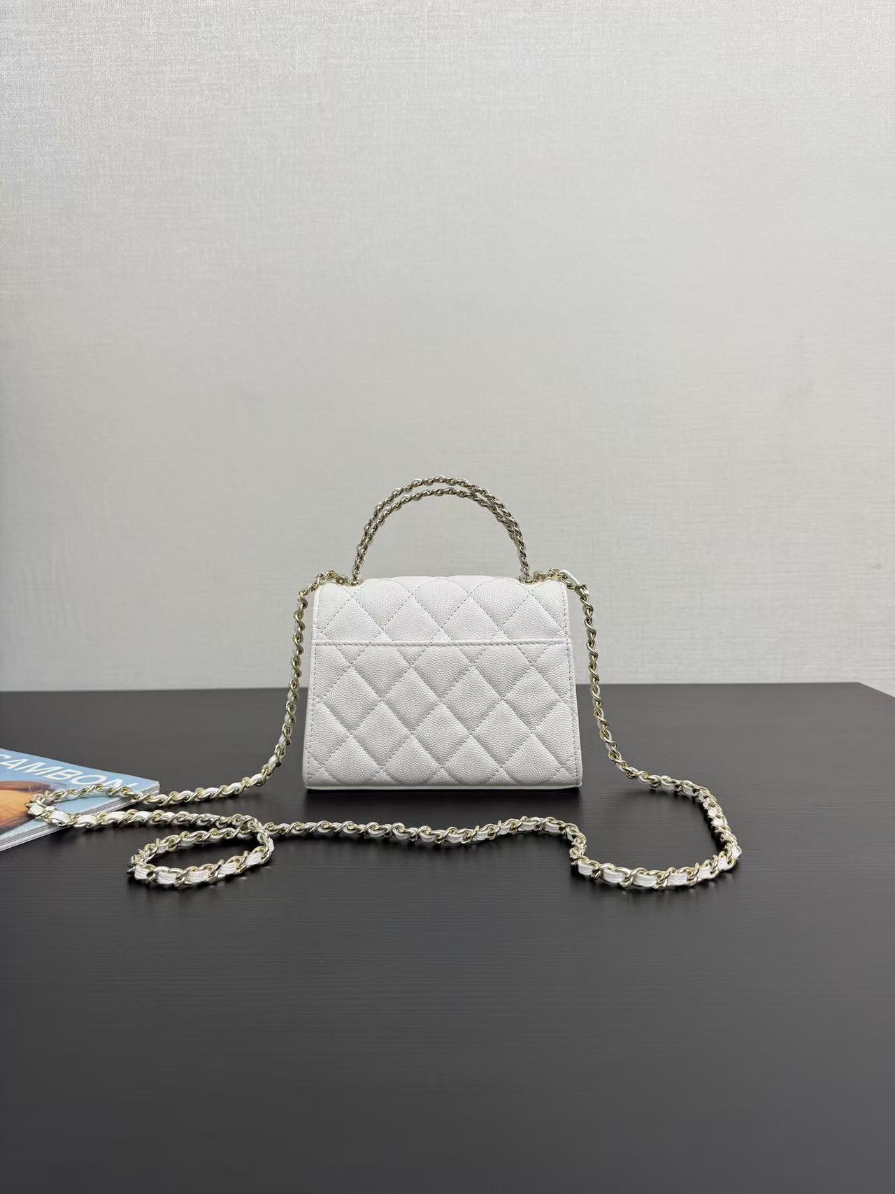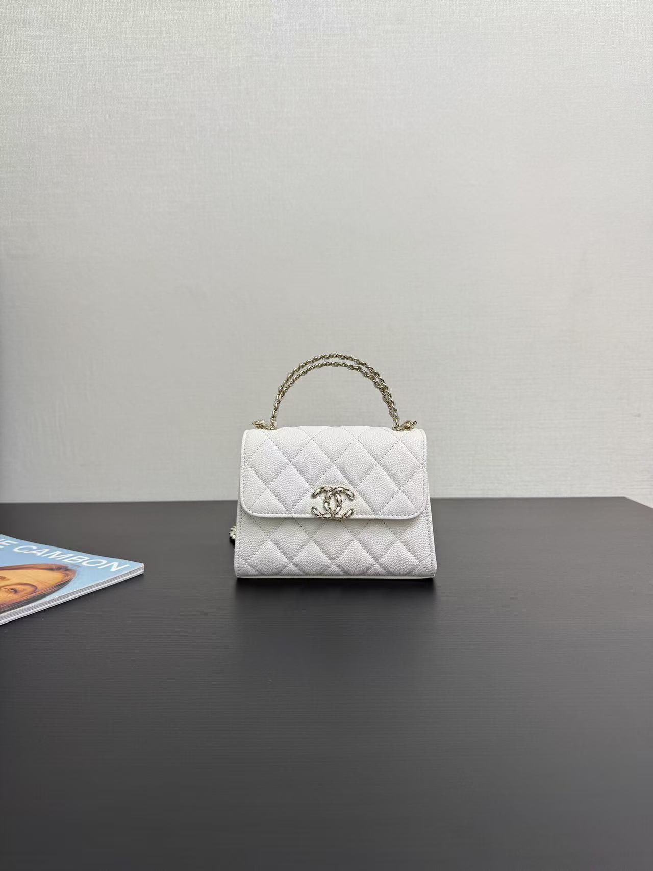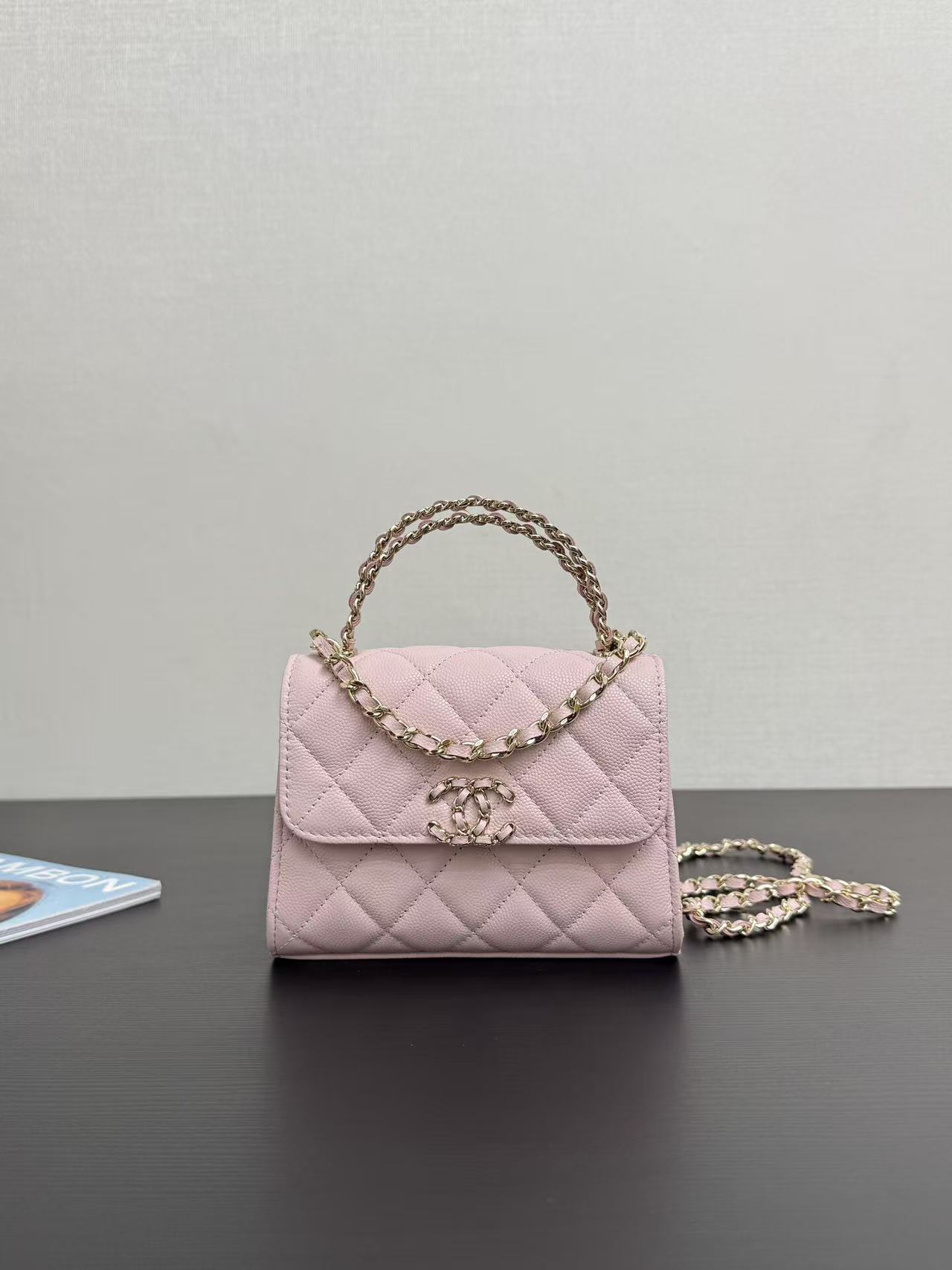 Chanel Kelly 25s handle mini bag, white, pink, and black, model number 99188