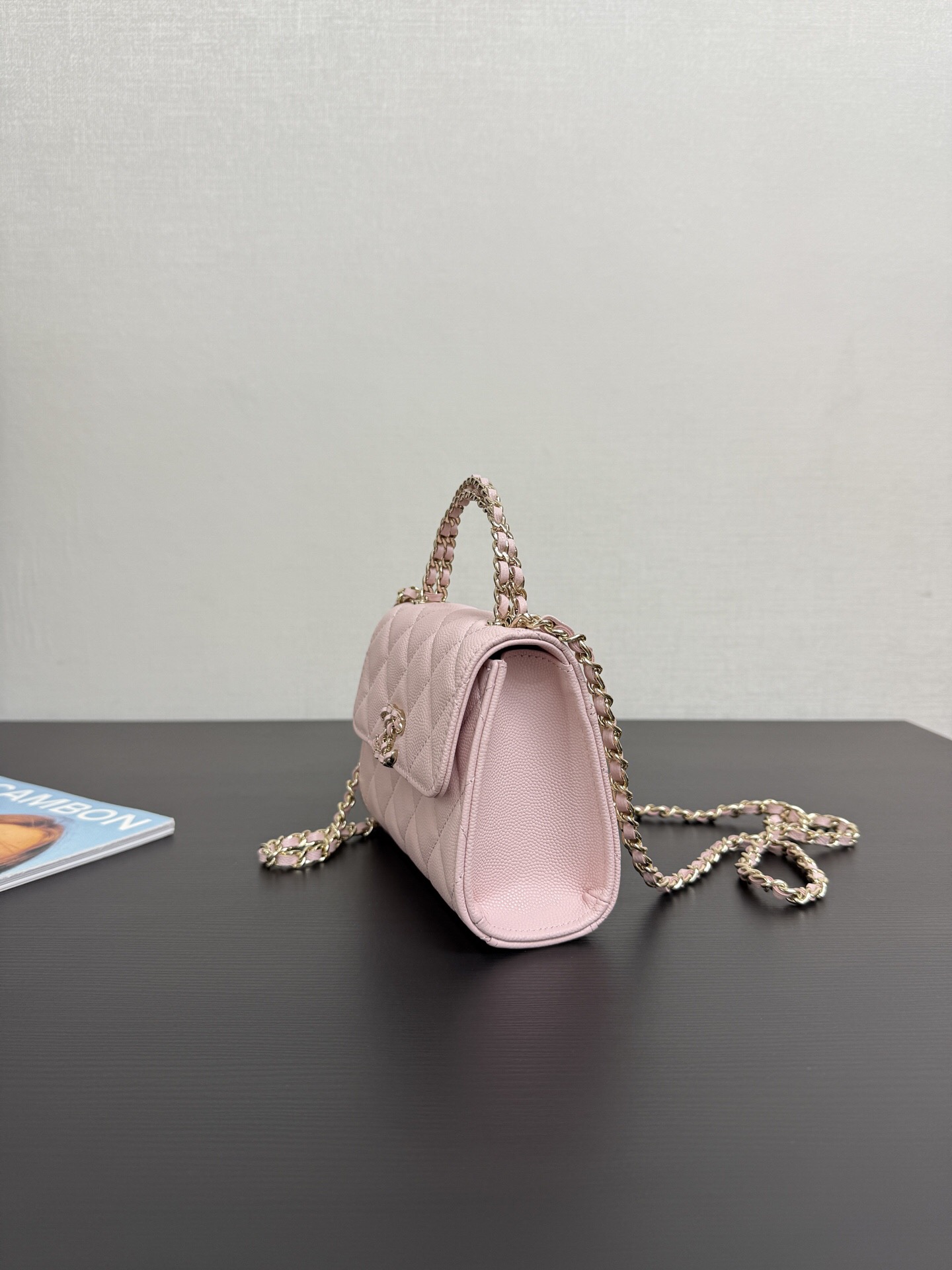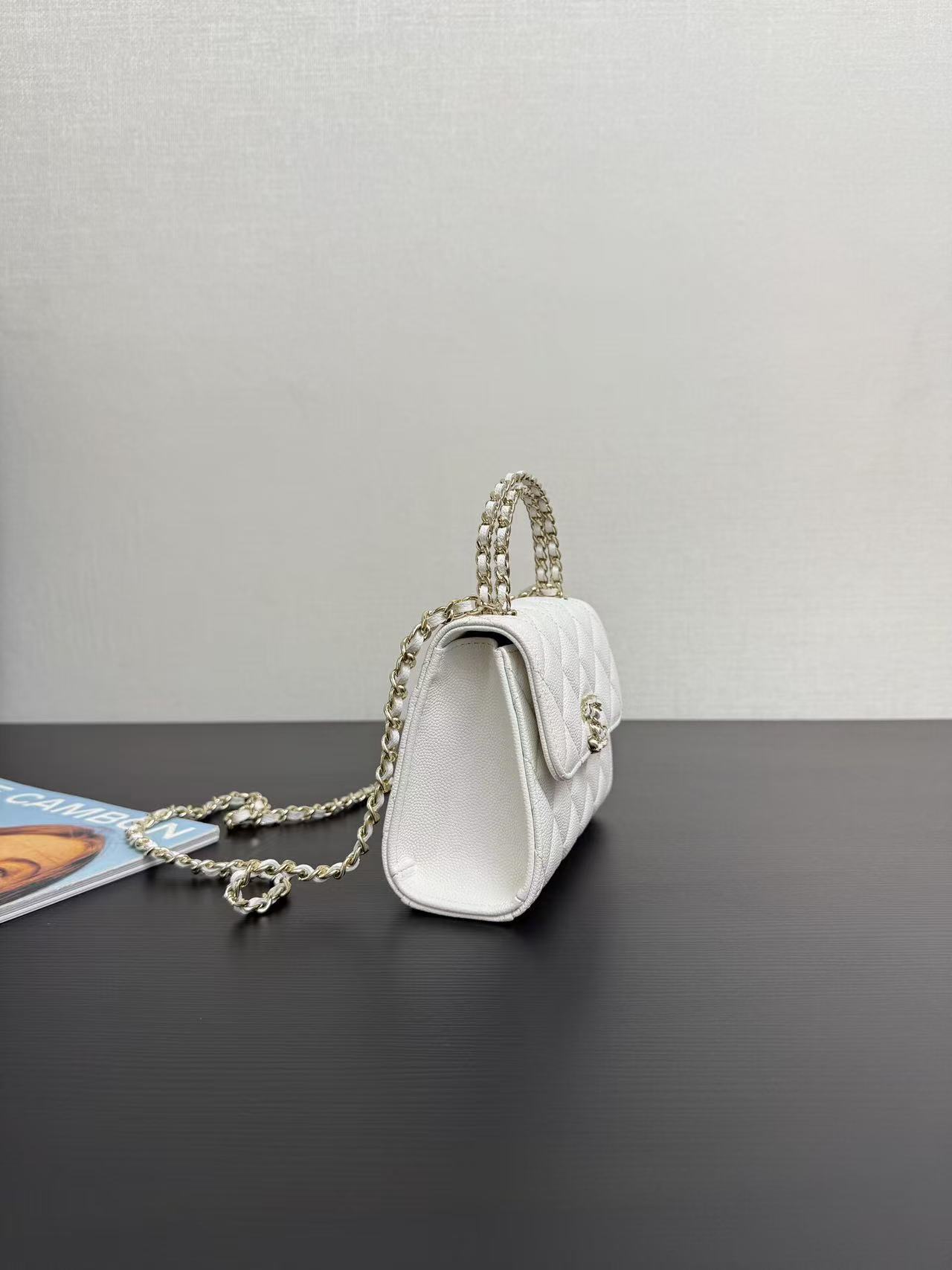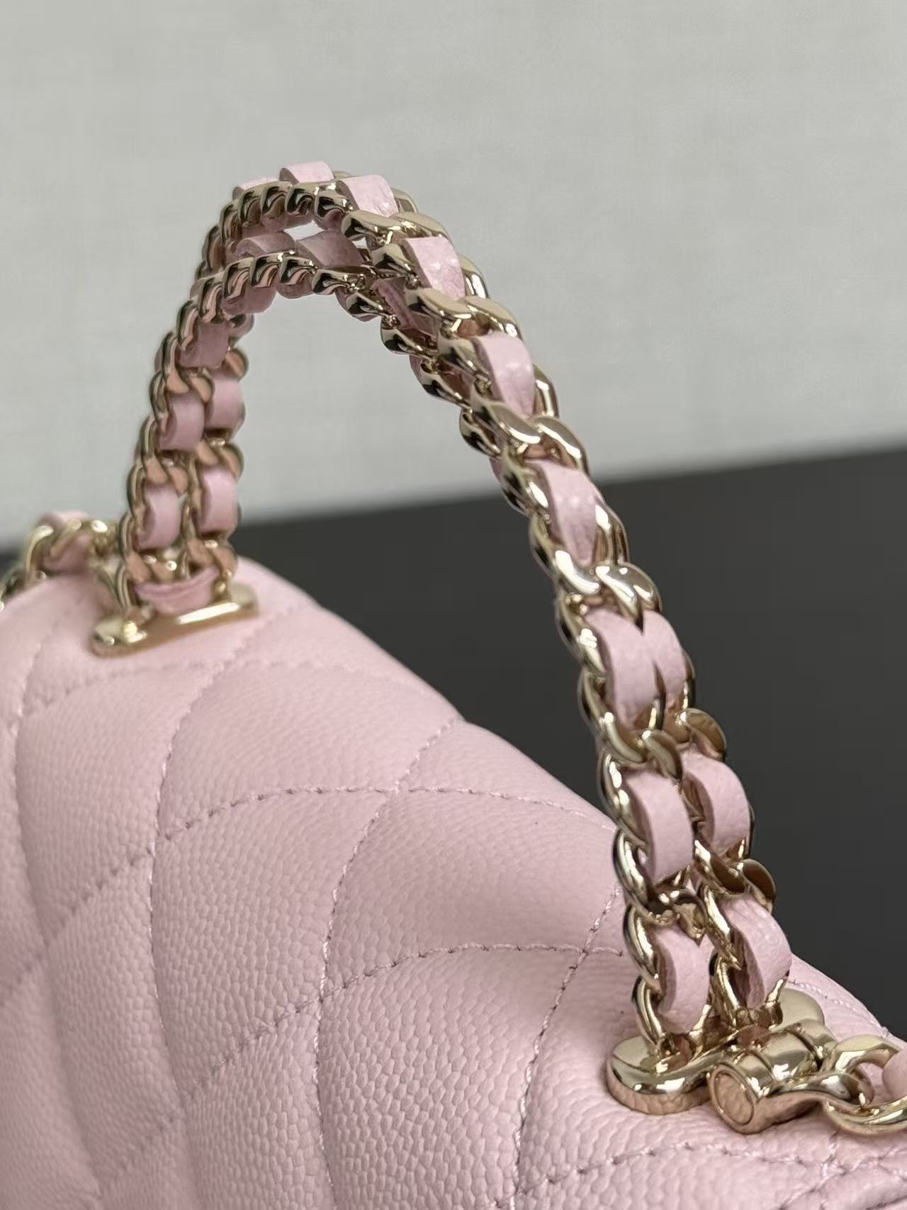Chanel Kelly 25s handle mini bag, white, pink, and black, model number 99188