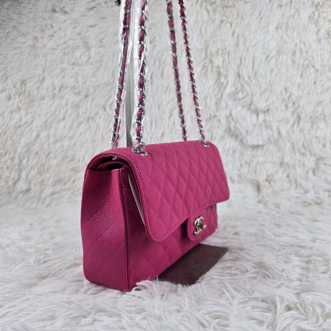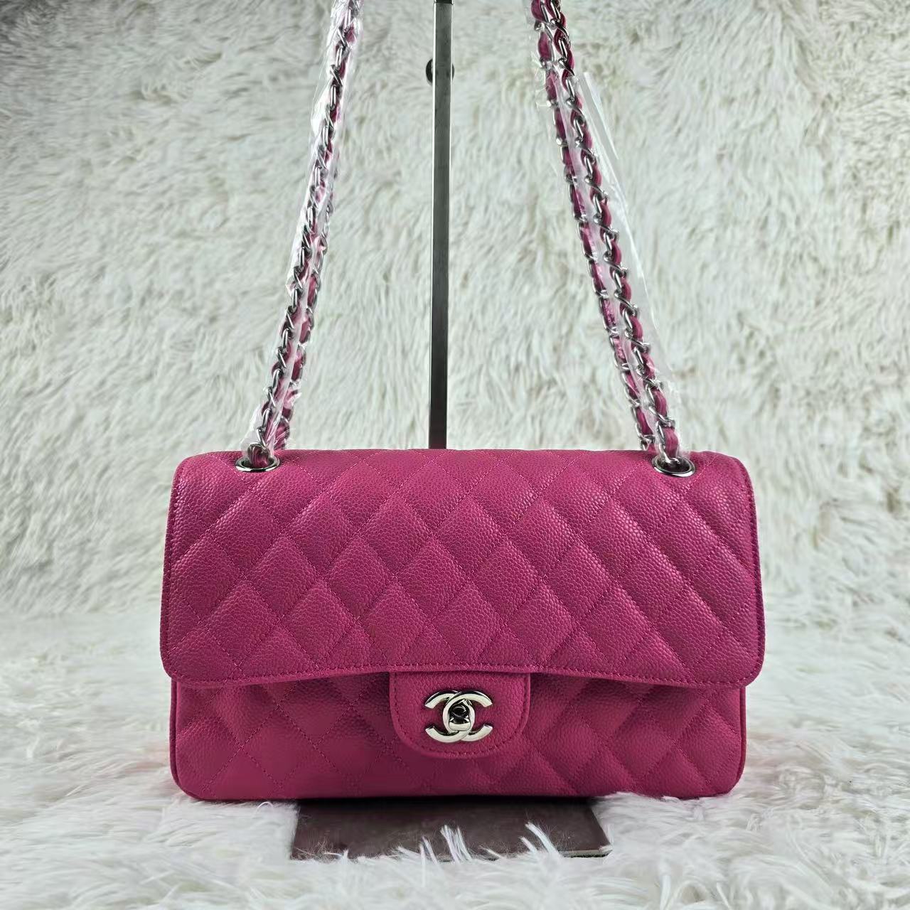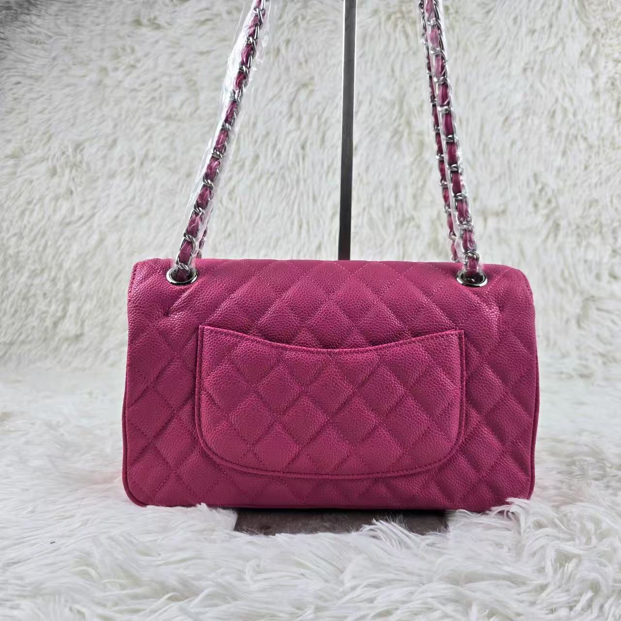 Chanel Rose Red Diamond Quilted Chain Bag, Item No. 1112, Silver and Gold BuckleDimensions: 25.5 x 16 x 7
