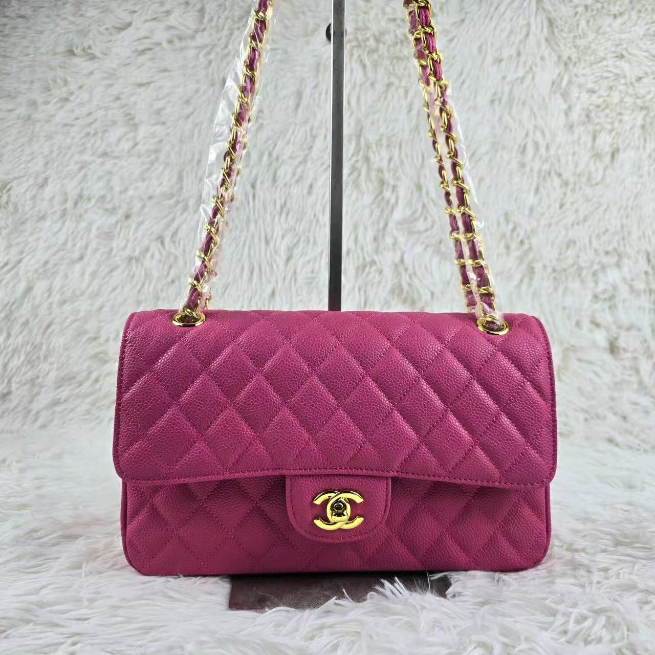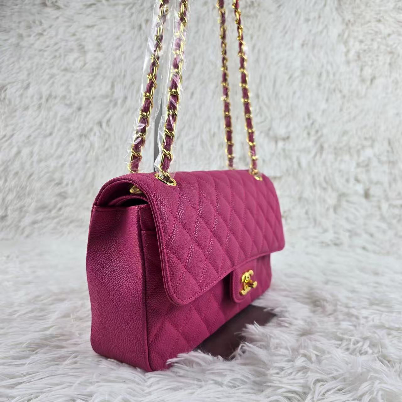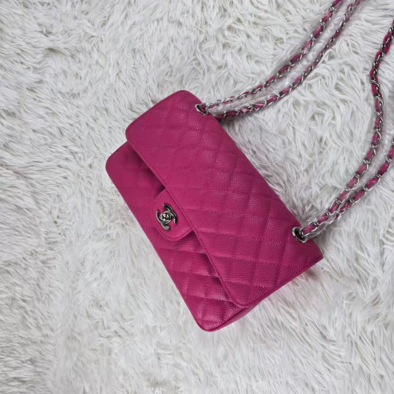 Chanel Rose Red Diamond Quilted Chain Bag, Item No. 1112, Silver and Gold BuckleDimensions: 25.5 x 16 x 7