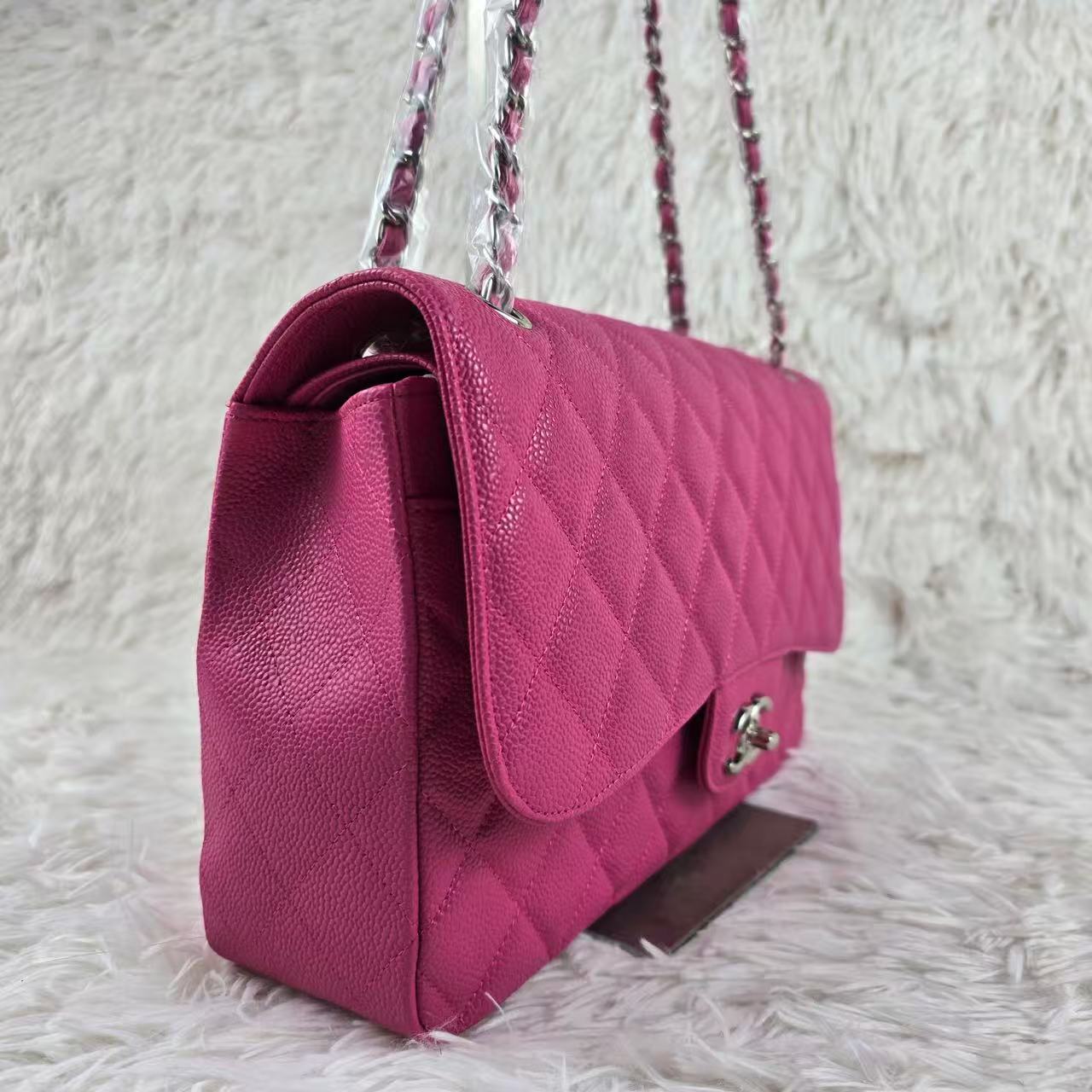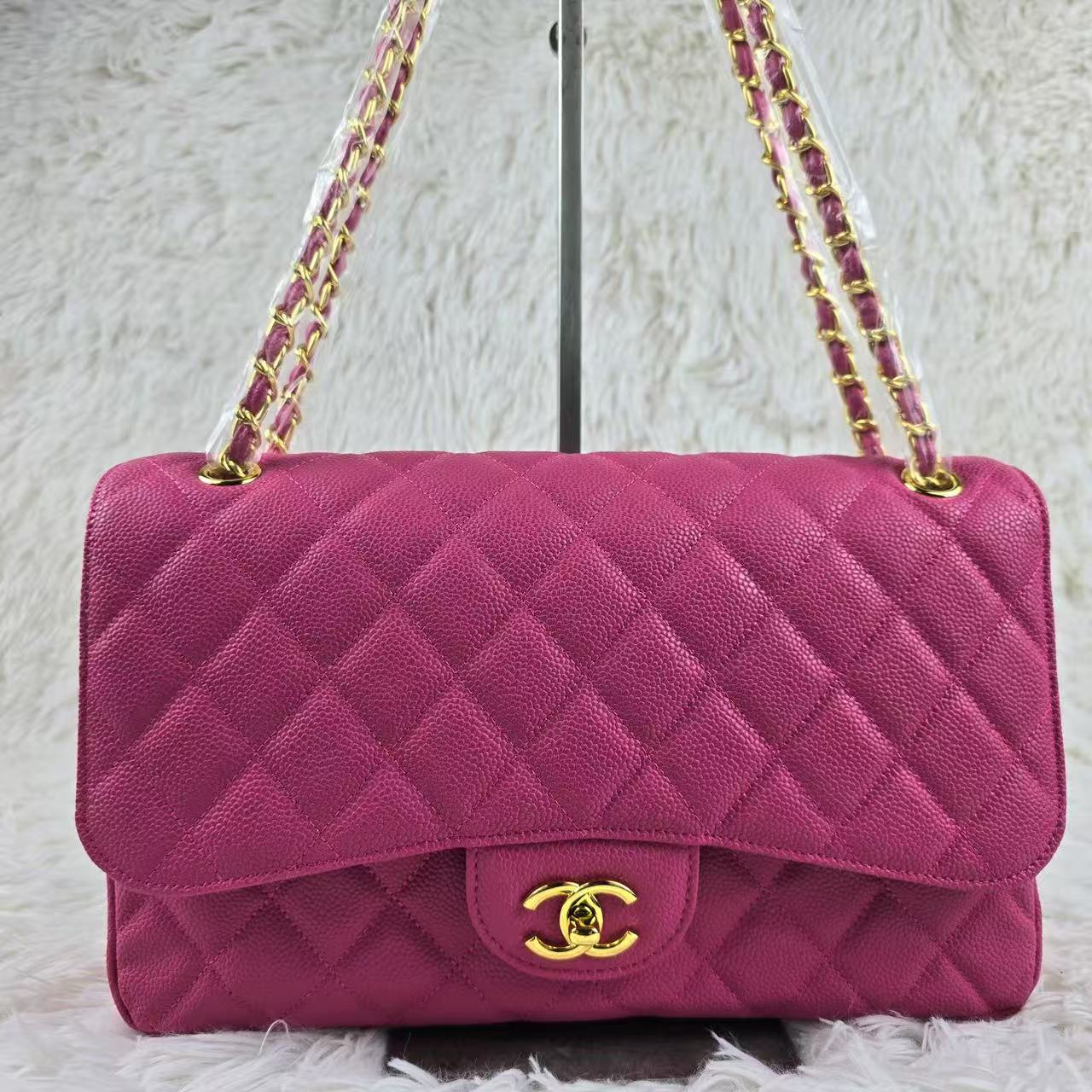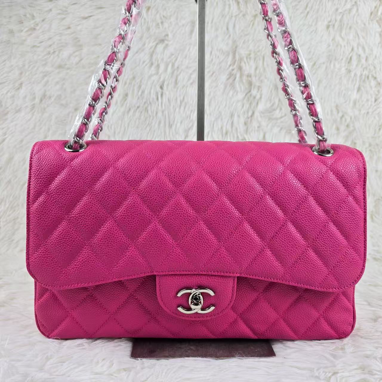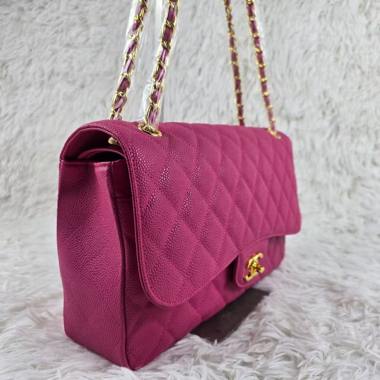 Chanel Rose Red Diamond Quilted Chain Bag Item No. 1113 Silver Buckle Gold BuckleSizes: 30/18/8