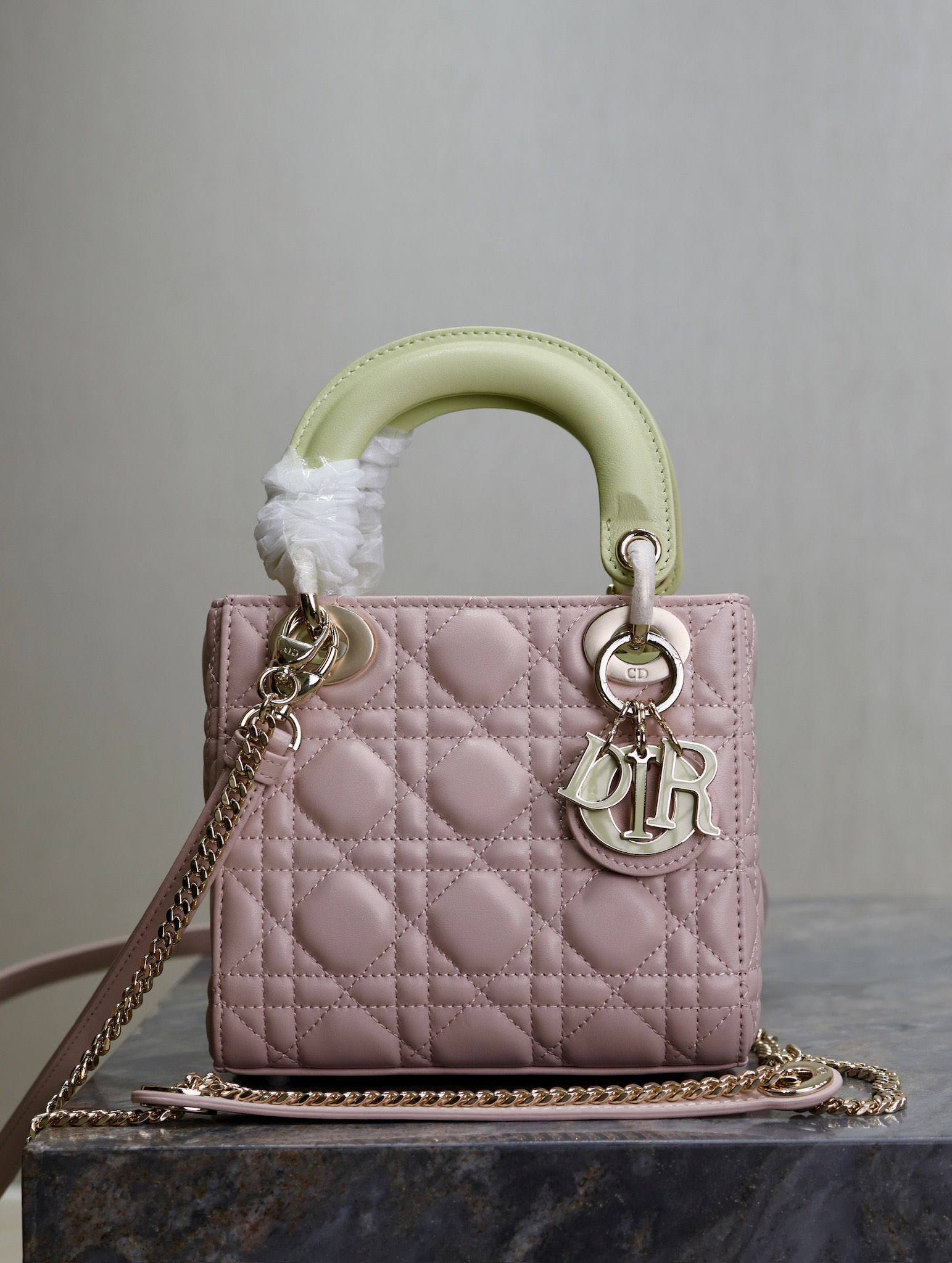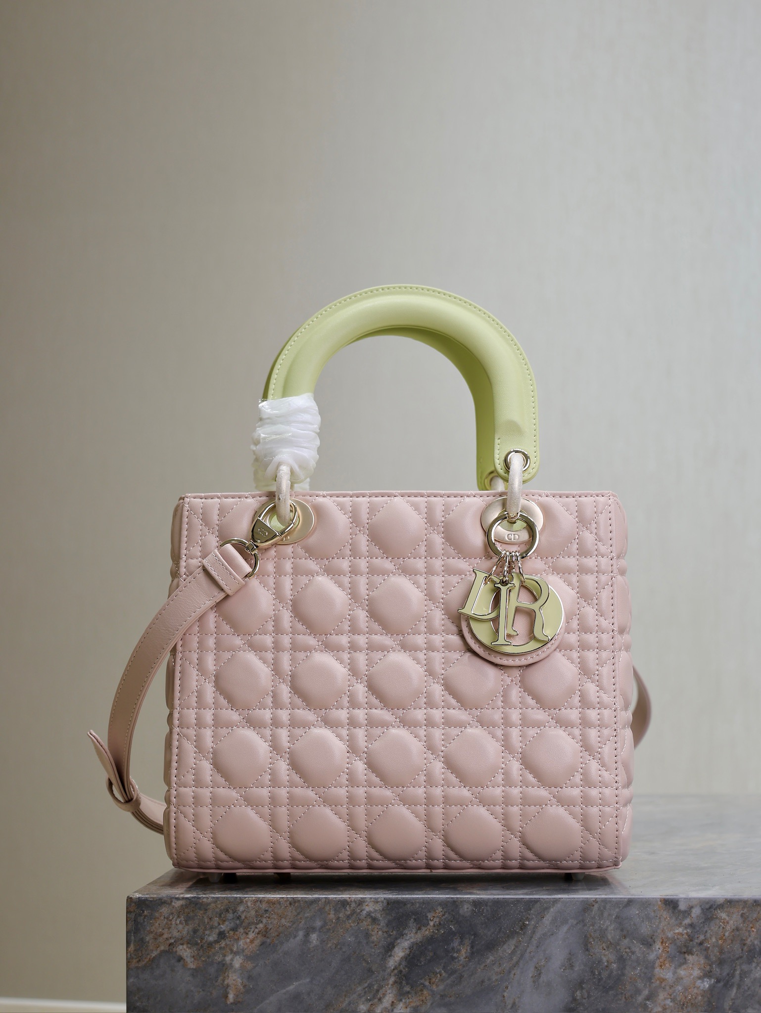 Dior Lady Dio.r Pink and Light Yellow Three-Compartment, Four-Compartment, Five-Compartment D-Joy Bag with Lambskin Double Shoulder Straps