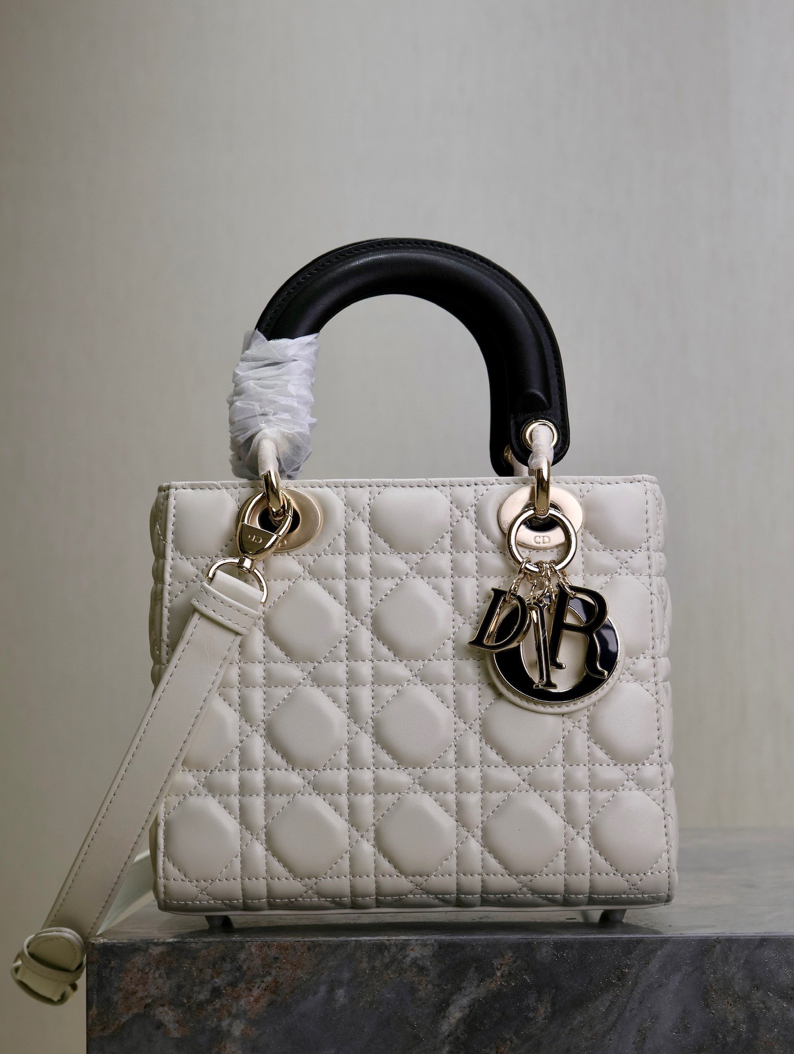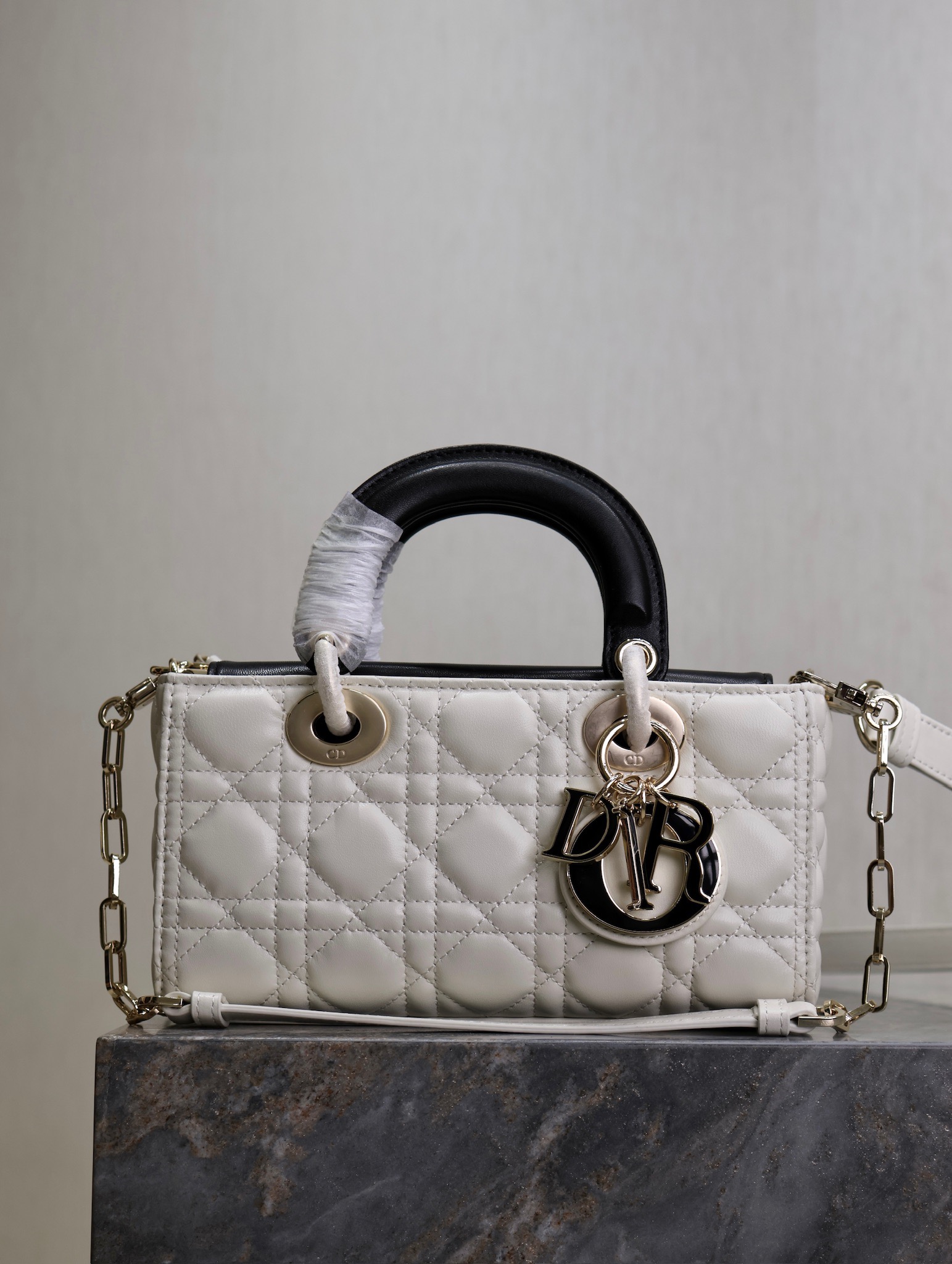 Dior Lady Dio.r White and Black, Four-Compartment, Three-Compartment, Five-Compartment D-Joy Bag, Lambskin Adjustable Shoulder Strap This handbag embodies Dio.r's profound insight into elegance and beauty. Crafted from lambskin leather with quilted detai