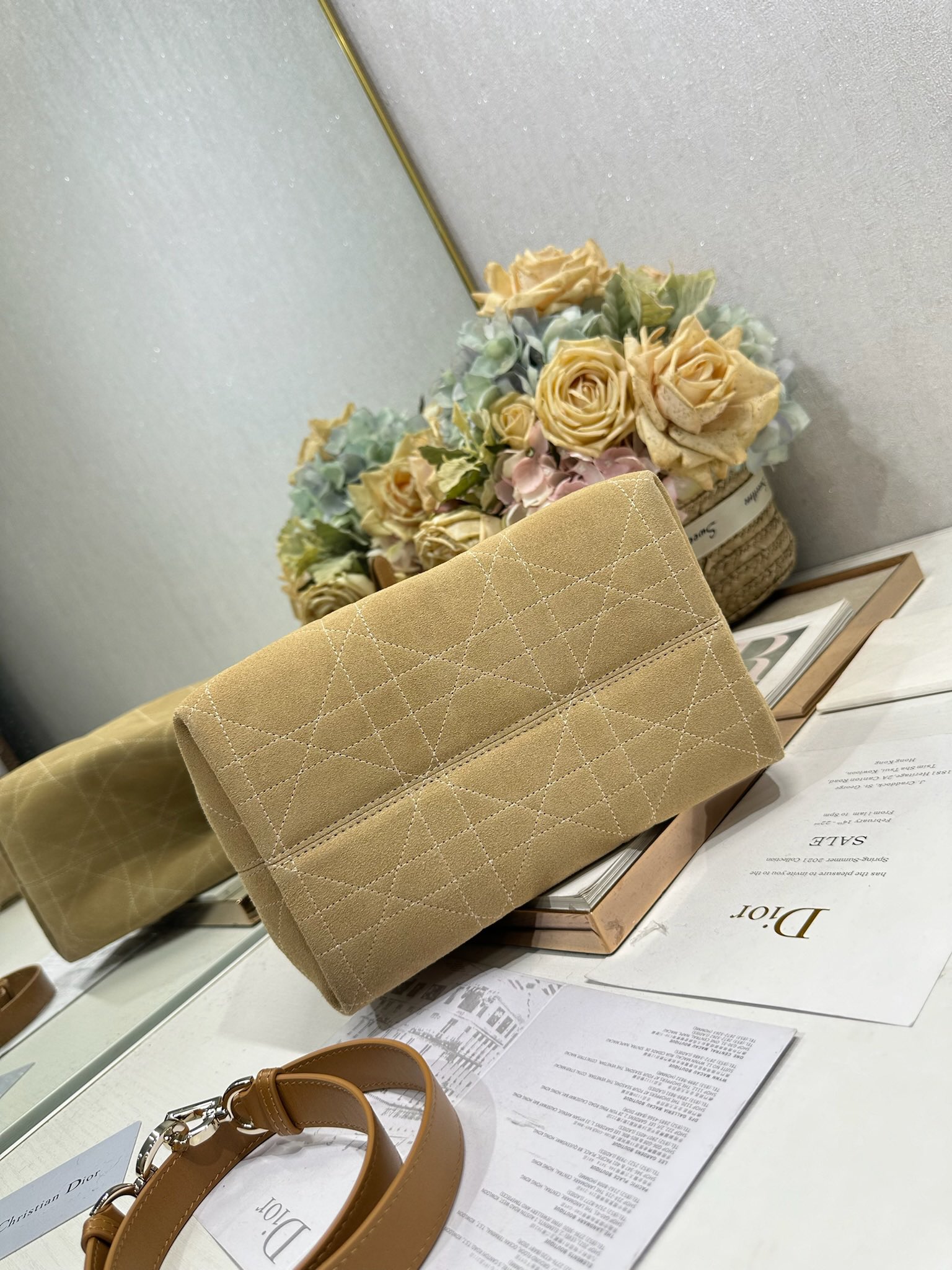 Dior Toujours Medium/Small Vertical Handbag "Apricot Velvet & Leather" Model: 2836